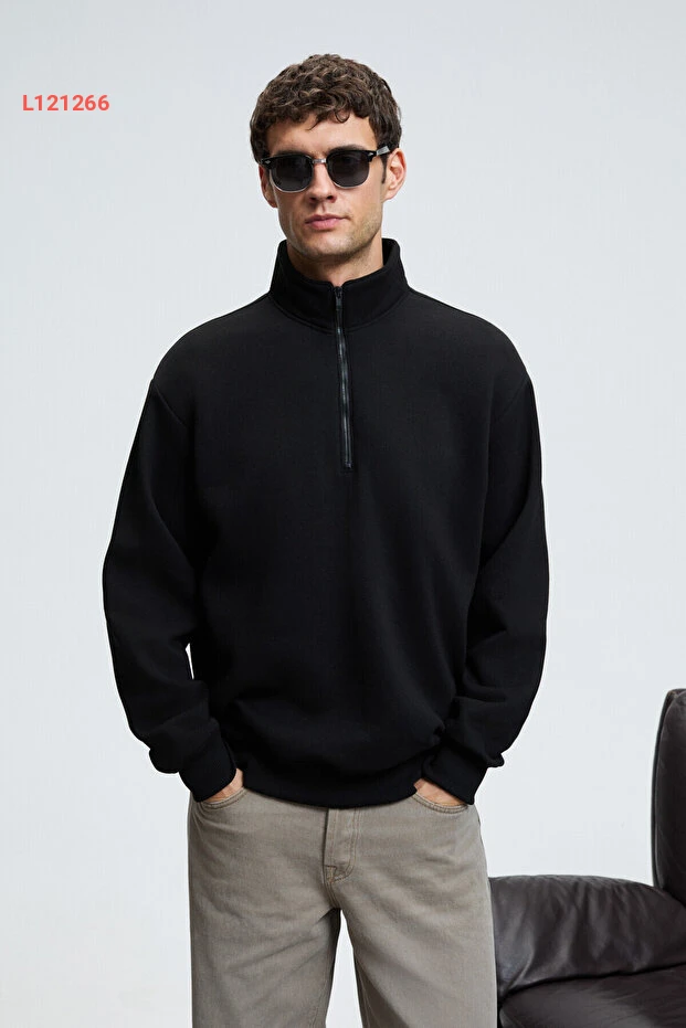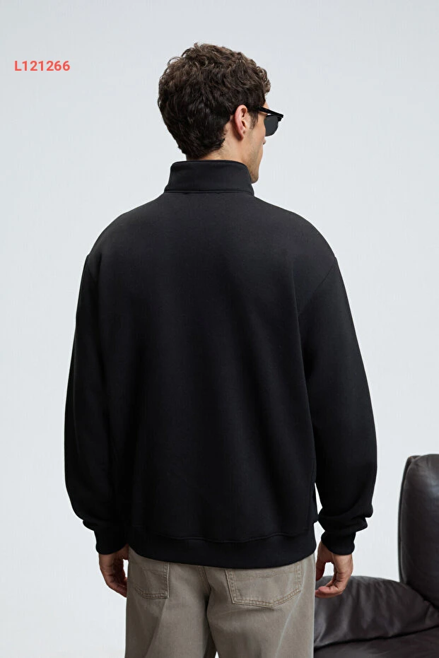 سويت شيرت رجالي أسود بسحاب بياقة مرتفعة من غريملانج باكستر