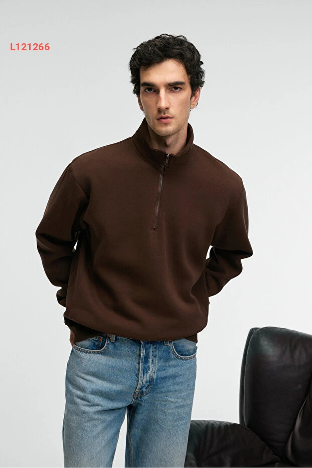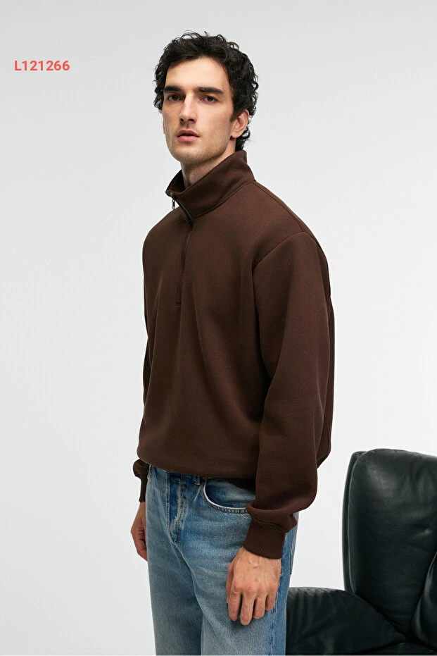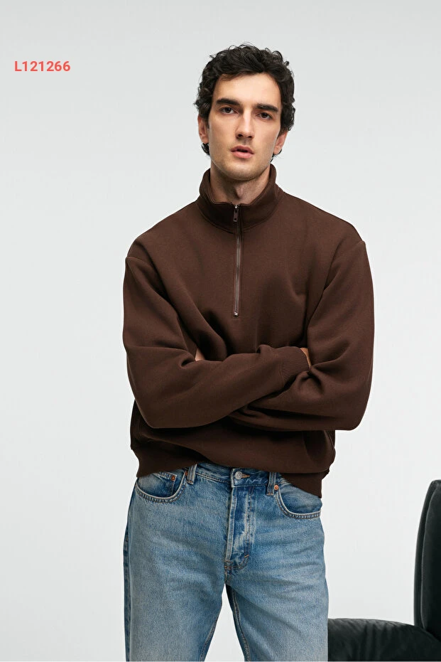 استمتع بأناقة غير رسمية مع سويت شيرت GRIMELANGE BAXTER، المصمم خصيصًا للرجل العصري. يأتي بلون بني دافئ وقصة مريحة، ويتميز بياقة مرتفعة وسحاب يسهل ارتداءه في أي مناسبة. اجعل كل لحظة فريدة ومريحة مع هذا القطعة المميزة في خزانتك!