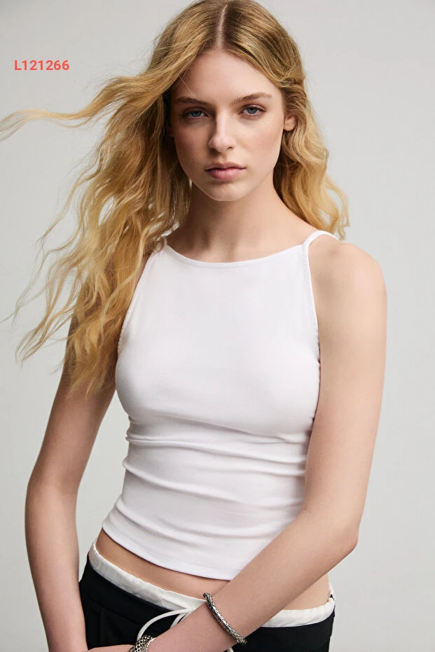 بلوزة نسائية بيضاء بأكتاف مكشوفة من القطن العضوي الناعم والمرن من جريميلانج سيلس