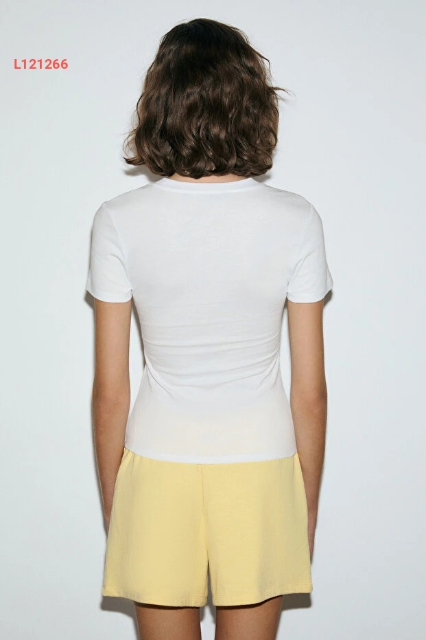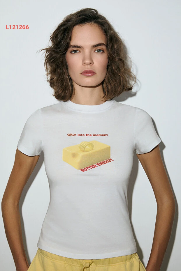 تي شيرت بيضاء نسائية مطبعة بتفاصيل عضوية من قطن ناعم من غريمالانج إمبيديا