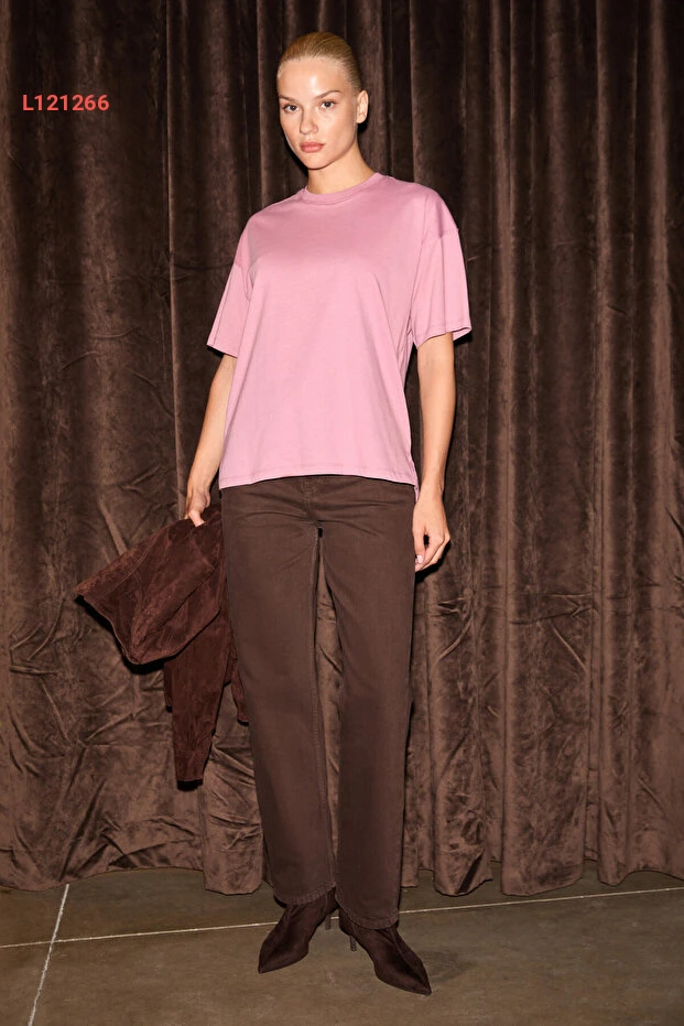 استمتعي بأناقة استثنائية مع ت-shirt GRIMELANGE Jemmy! مصنوعة من 100% قطن عضوي، تجمع بين الراحة العصرية والتصميم الجذاب بفضل ياقة الدائرة والفتحات الجانبية. اختاري إطلالة غير رسمية وأنيقة بلون رقيق يناسب كل المناسبات!