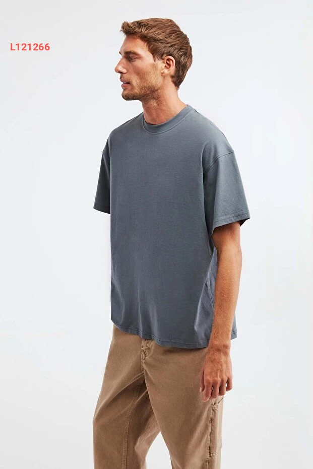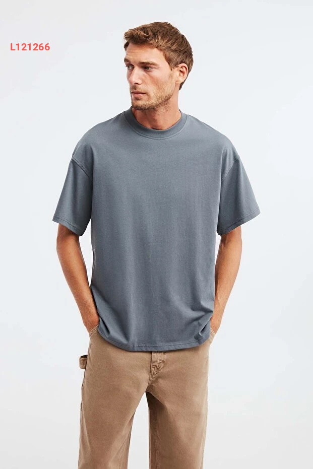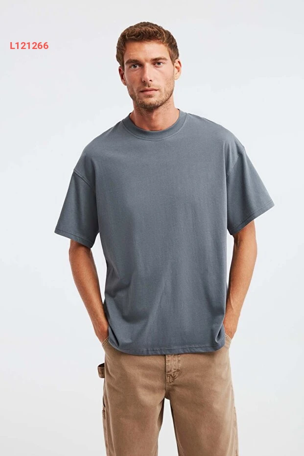 تي شيرت جيت أوفرسايز رجالي من جريملانج - 100% قطن عضوي بسماكة عالية بلون رمادي فاتح
