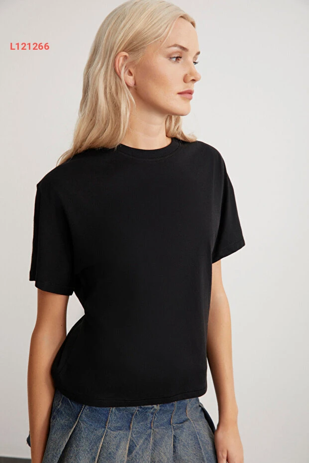 اكشفي عن أناقتك مع تيشرت GRIMELANGE Lottıe النسائي، المصنوع من 100% قطن عضوي عالي الجودة. يتميز بقصته العادية وكشكشه الأنيق، مما يجعله الخيار المثالي لإطلالة مريحة وعصرية في كل المناسبات. ارتدي هذا التيشرت الأسود الأساسي لتكمل مظهرك بكل ثقة.