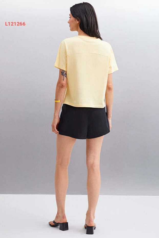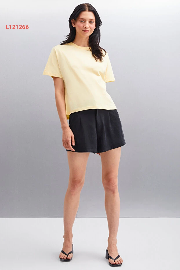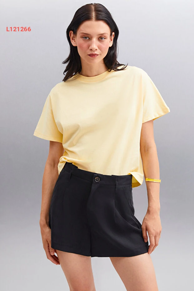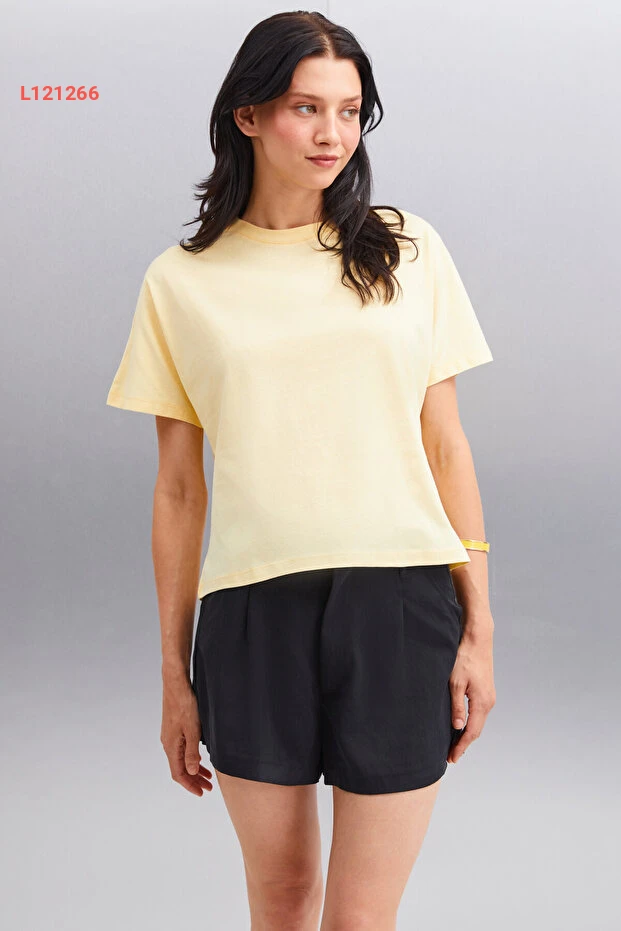 استمتعي بإطلالة أنيقة ومريحة مع تي شيرت "GRIMELANGE Lottıe". مصنوع من 100% قطن عضوي، يوفر لكِ نعومة تفوق الوصف وراحة في كل لحظة. تصميمه البسيط بياقة دائرية وأكمام قصيرة يجعله خيارًا مثاليًا لجميع المناسبات، بينما يضيف اللون الأصفر المتألق لمسة من الحيوية إلى خزانة ملابسك.