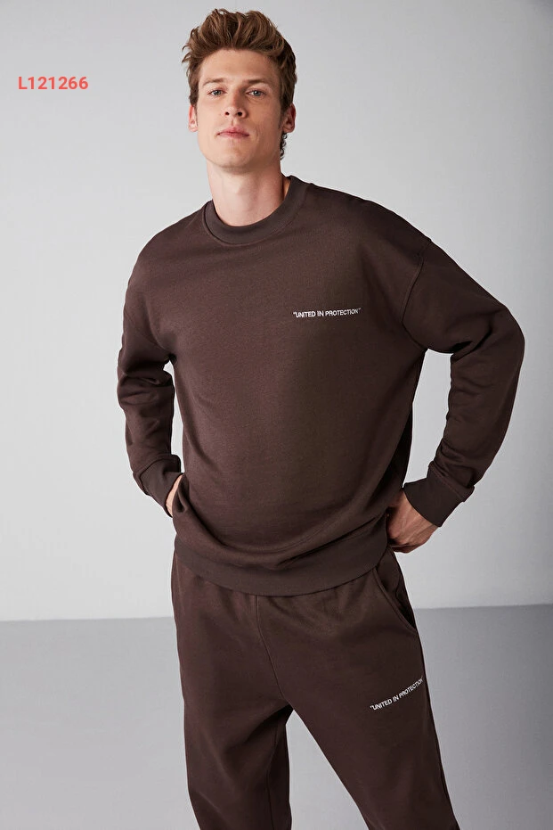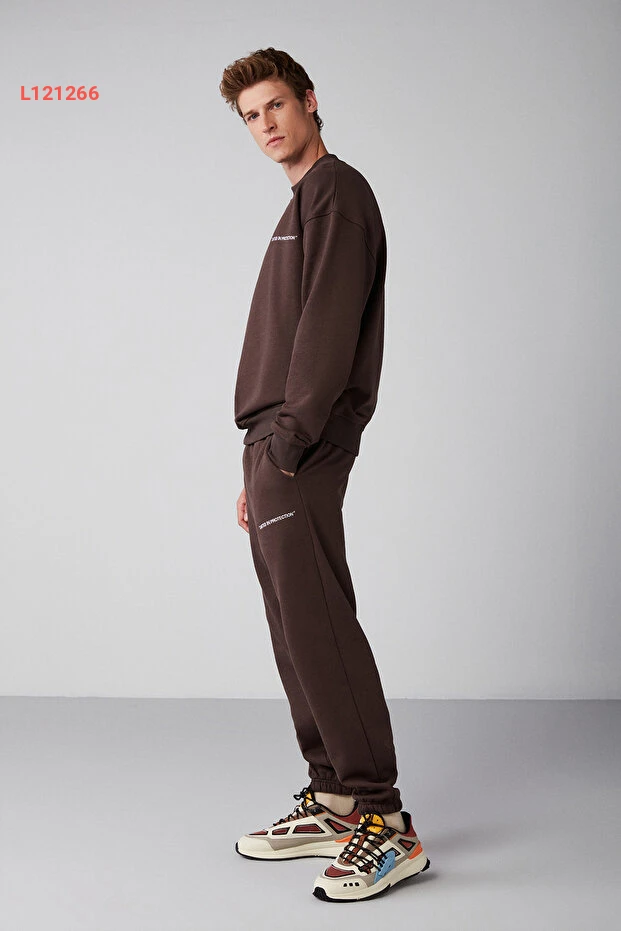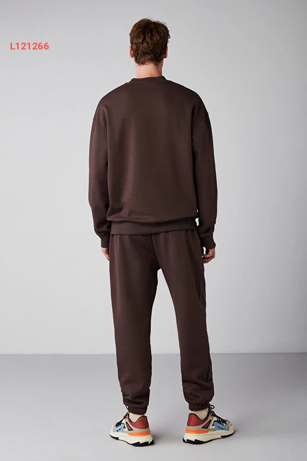 طقم رياضي رجالي مارشال قطن بنقوش فاخرة مع بطانة مخملية باللون البني