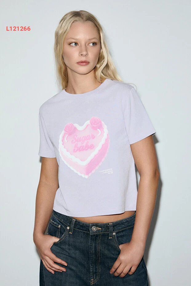 تي شيرت ليلك قصير الأكمام مطبوع من قطن عضوي للنساء من غريميلانج ميلوناي