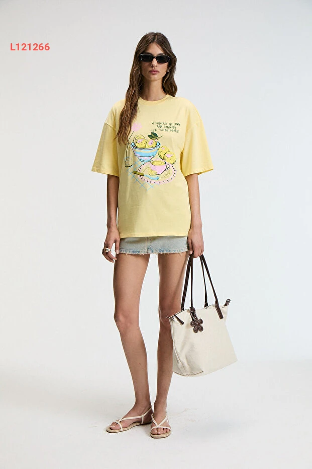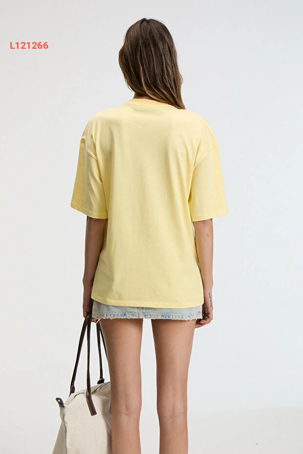 استمتعي بأناقة لا تضاهى مع تي شيرت GRIMELANGE NITZA Oversize، المصنوعة من 100% قطن ناعم وعالي الجودة. يتميز بقصة فضفاضة وبتصميم حنجري أنيق بلون أصفر زاهي، مما يضمن لكِ راحة مثالية مع لمسة عصرية تناسب جميع إطلالاتك اليومية.