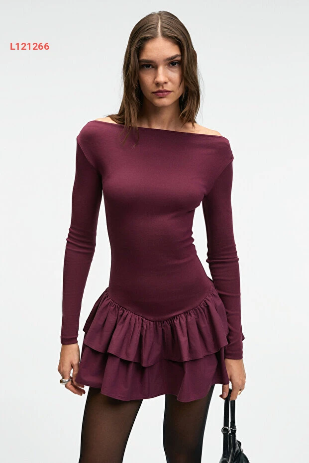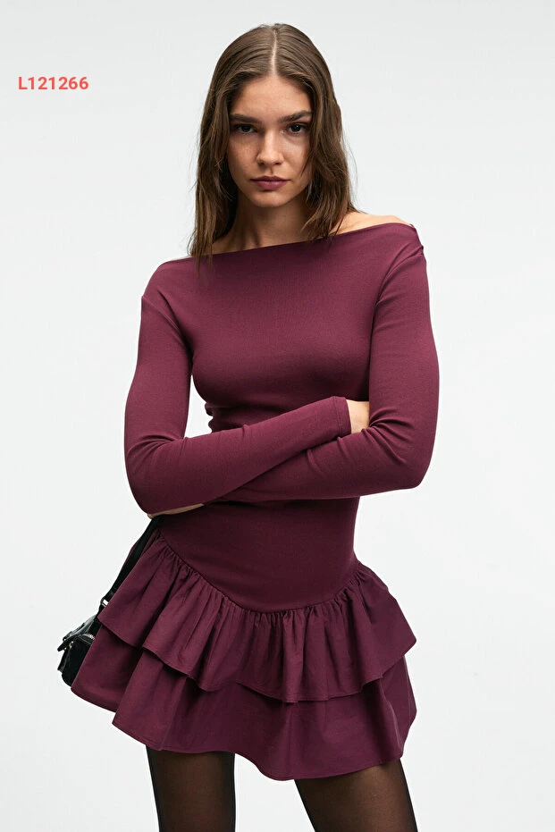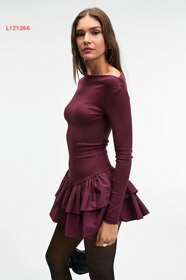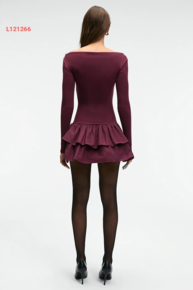 فستان ميني بوردو نسائي بقصة عادية مع التنورة المرنة من غريملانج