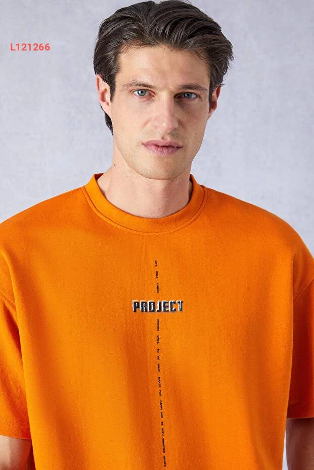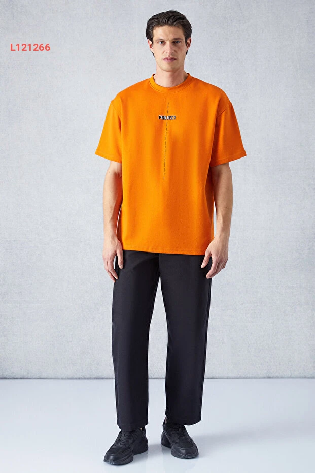 تألّق بأسلوبك مع تي شيرت GRIMELANGE PROJECT البرتقالي المميز! مصنوع من 100% قطن عضوي لتضمن لك راحة فائقة وأناقة غير مسبوقة، تصميمه الفضفاض مع تفاصيل الطباعة يضفي لمسة عصرية تناسب جميع الأوقات. استمتع بإطلالة فريدة تجمع بين الراحة والاستدامة!