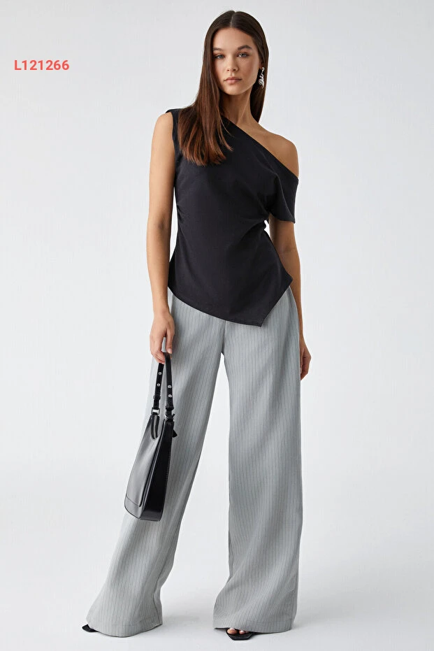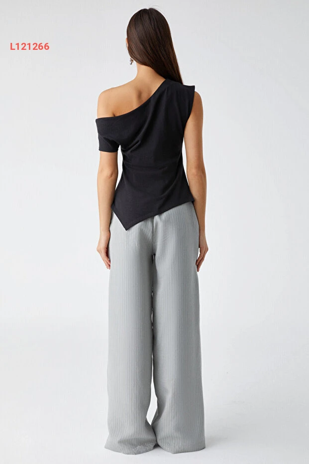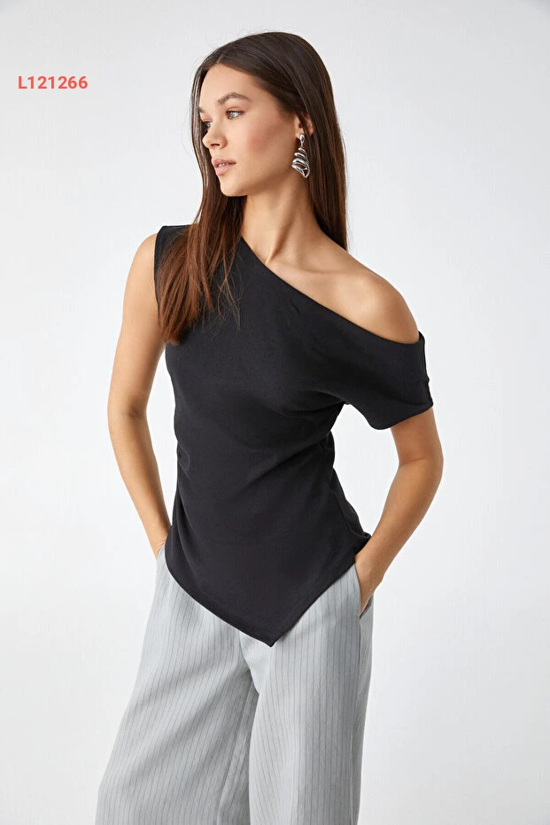 بلوزة نسائية سوداء بقصة عصرية بياقة غير متناظرة من قطن 100%