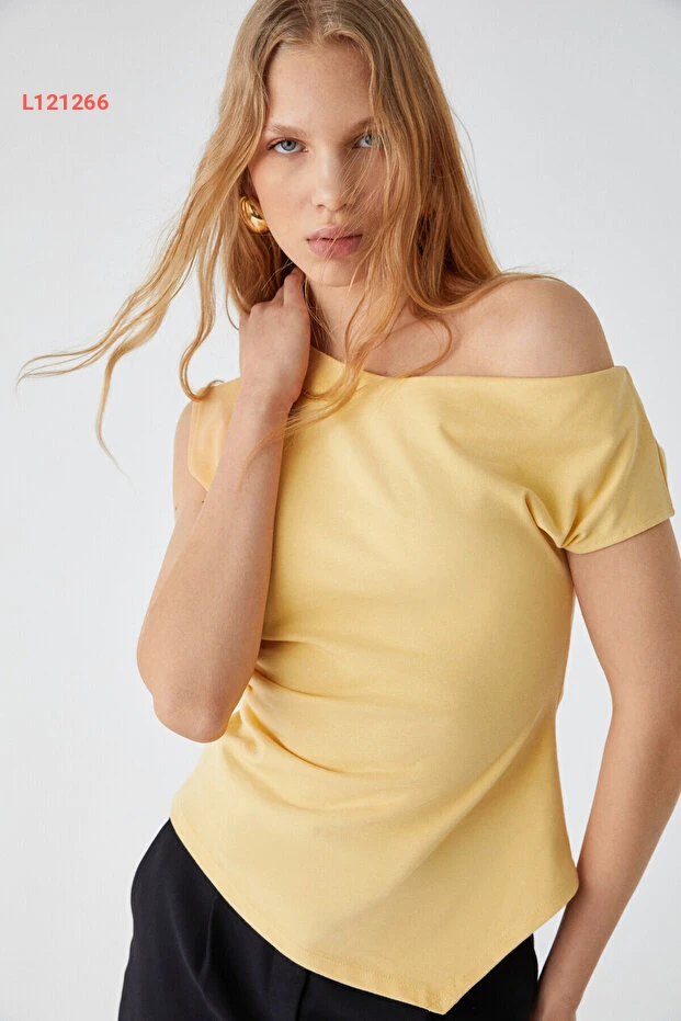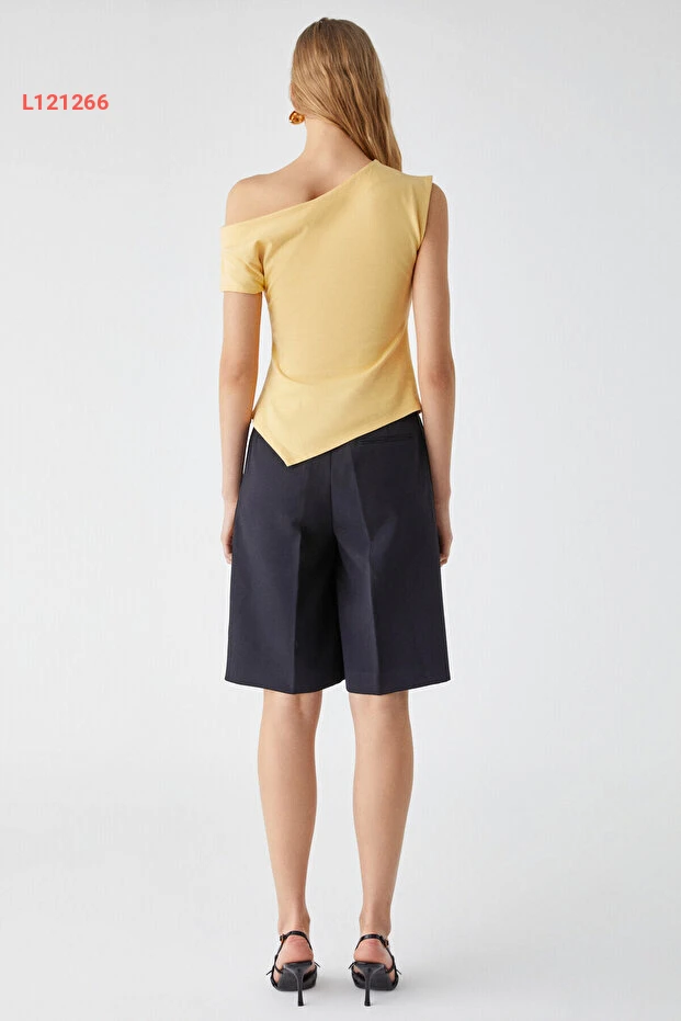 بلوزة نسائية صفراء بقصة غير متوازنة وأكمام قصيرة من غريميلانج