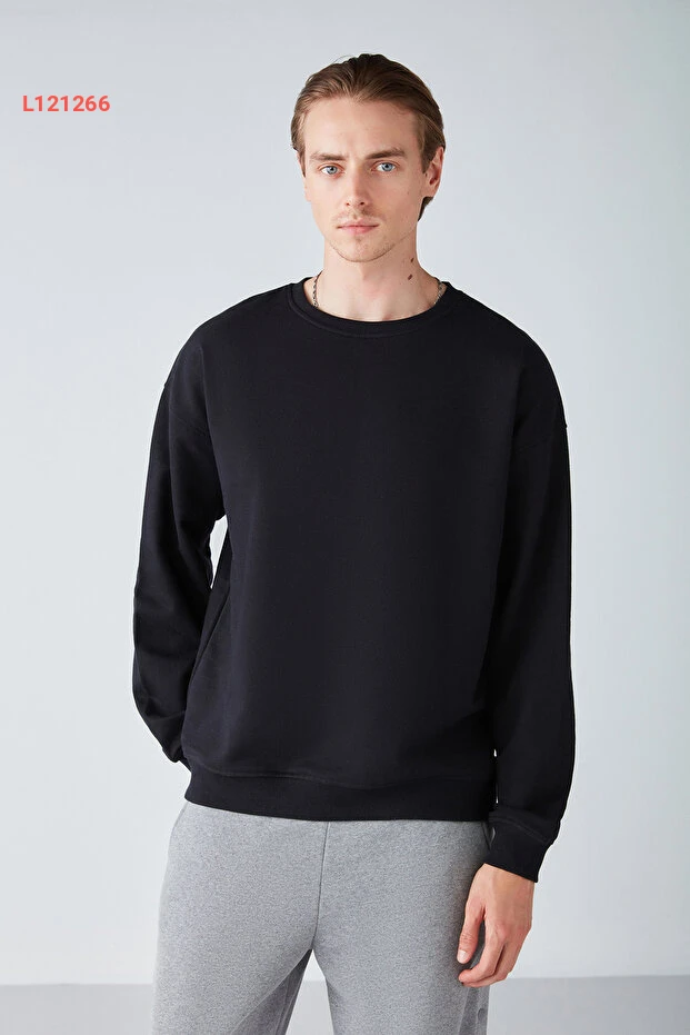 سويت شيرت شتوي عضوي للرجال من جريميلاجي، قماش ناعم ثلاثي الطبقات، تصميم واسع باللون الأسود