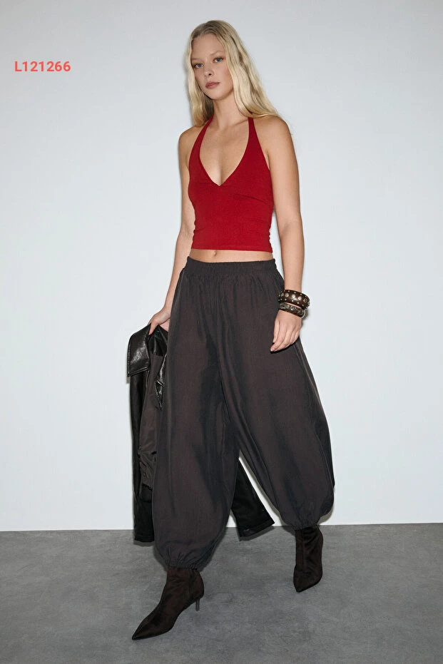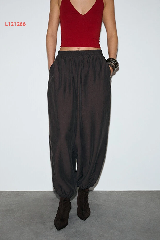 بنطلون باريل نسائي بني من قماش التنسل من غريميلانج