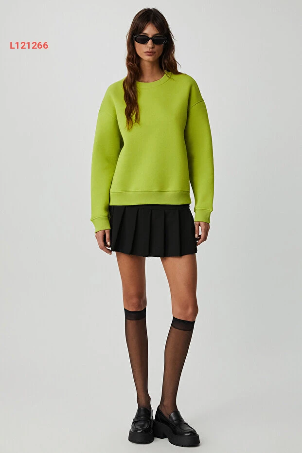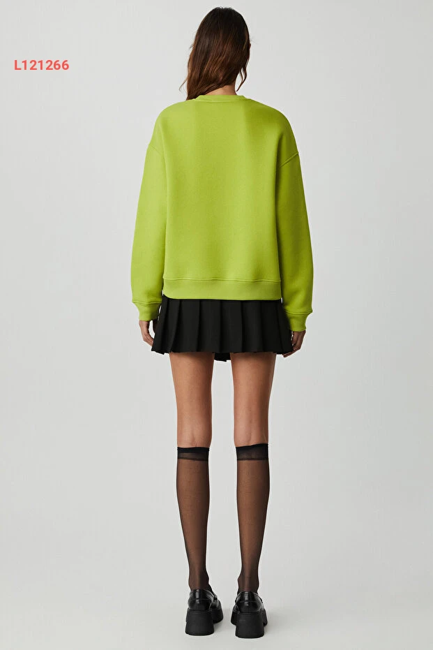 سويت شيرت فستق أخضر نسائي بتصميم واسع من قطن عضوي مبطن بالفرو