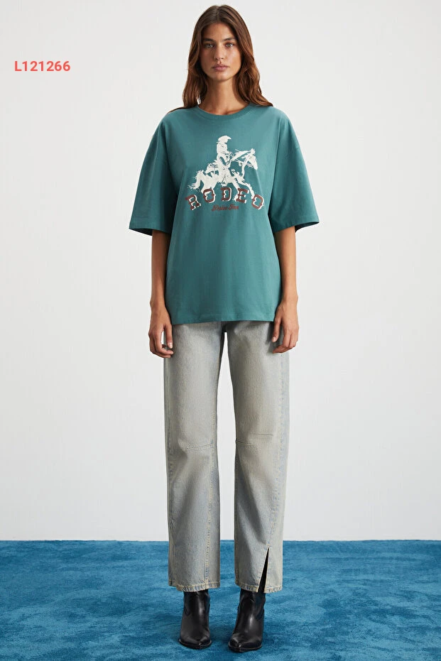 استمتعي بالأناقة والراحة مع ت-shirt GRIMELANGE Majer المصنوعة من 100% قطن عضوي. بتصميم Western الفريد ولونها الأخضر الجذاب، تجمع هذه القطعة المثالية بين الراحة والمظهر العصري، مما يجعلها خياراً ممتازاً لإطلالة يومك. ارتديها مع الجينز أو التنورة لإطلالة مريحة وعصرية في كل مناسبة!