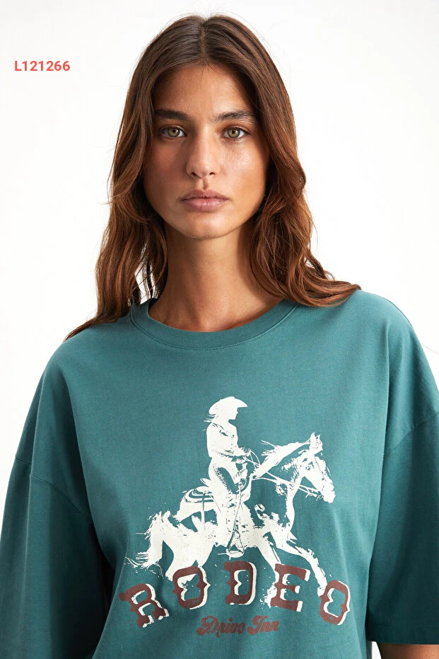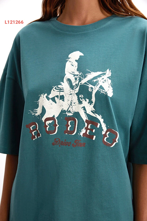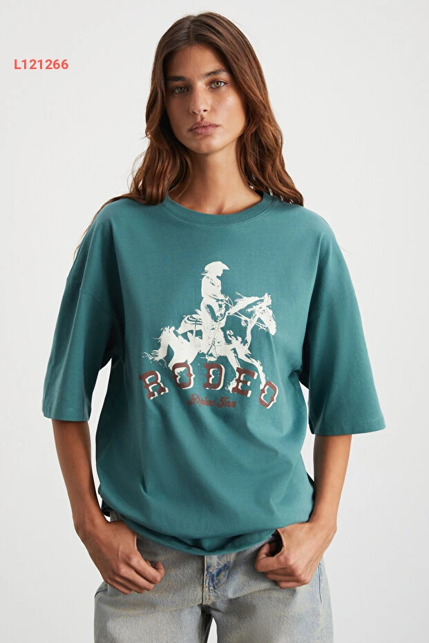 تي شيرت غرمالانج للنساء 100% قطن عضوي بتصميم ويسترن - لون أخضر