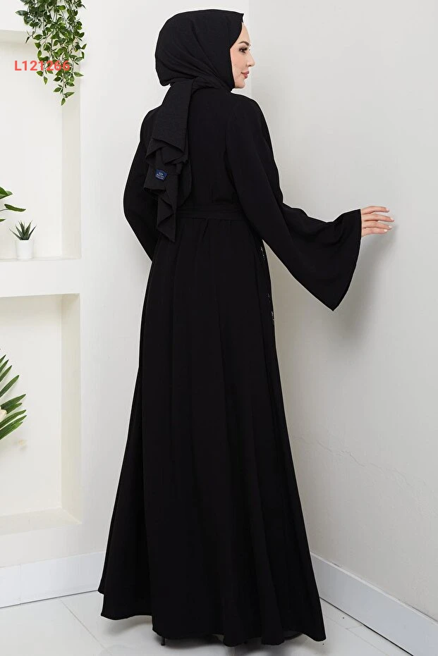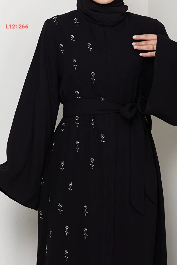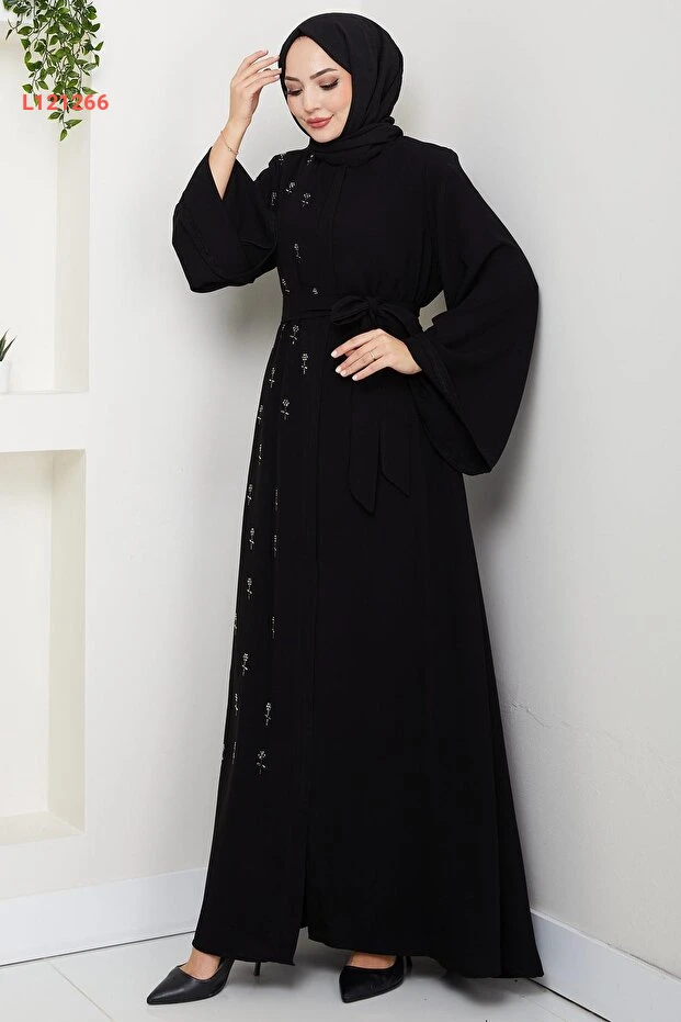 تألقي بإطلالة راقية مع الفيروزة السوداء "Hafsamina Kuşaklı Çiçek Taşlı Ferace". تتميز بتصميم أنيق مزين بالأزهار اللامعة، مما يضيف لمسة من الفخامة إلى يومك. مع حزام يحدد الخصر، توفر لك هذه الفيروزة راحة وأناقة تناسب جميع المناسبات.