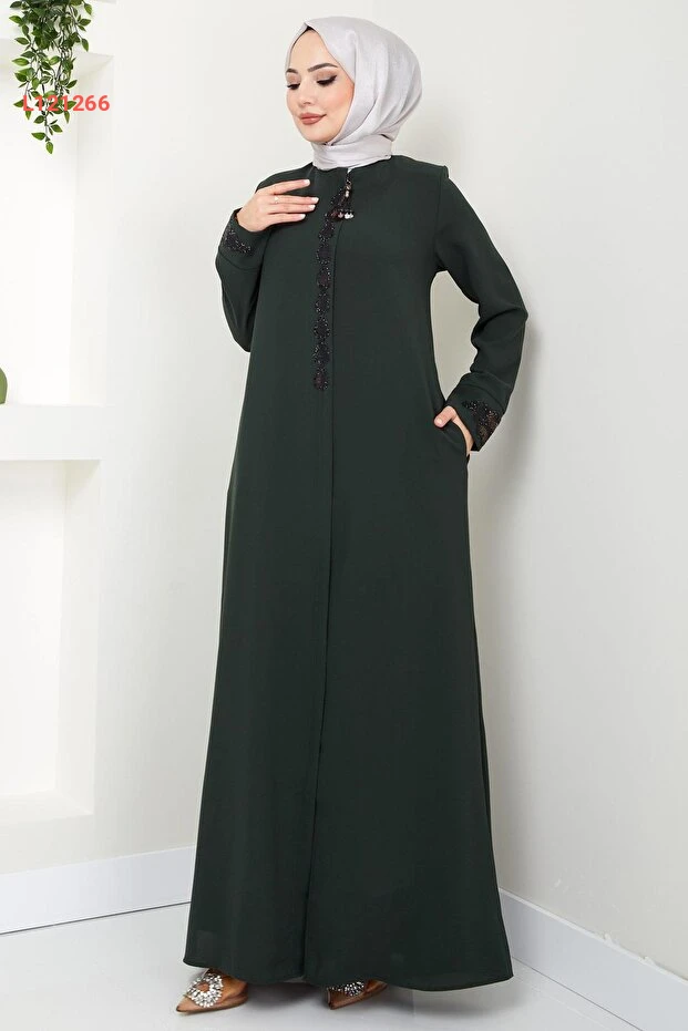 استمتع بإطلالة أنيقة ومميزة مع فراءة "Hafsamina Damla Taş" بلون الهاكي، حيث تجمع بين الأناقة والراحة. تتميز بتفاصيل حجرية رائعة تعزز من جمالية التصميم، مما يجعلها الخيار المثالي لكافة المناسبات. اختاري الأناقة المتجددة وتألقي في كل يوم!
