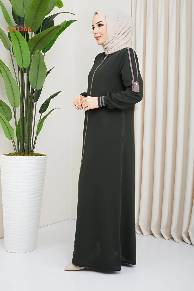 استمتع بالأناقة والراحة مع "Hafsamina Biye Detaylı Haki Ferace"، حيث يجمع التصميم العصري مع التفاصيل الفريدة. مصنوعة من قماش خفيف ومريح، هذه الفيرازي تضفي لمسة مميزة على إطلالتك اليومية وتضمن لك الحماية من التغيرات الجوية. ارتديها بثقة وتميّز في كل مناسبة!