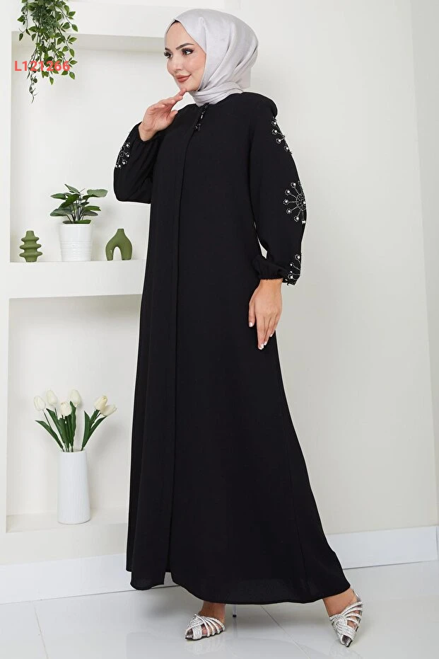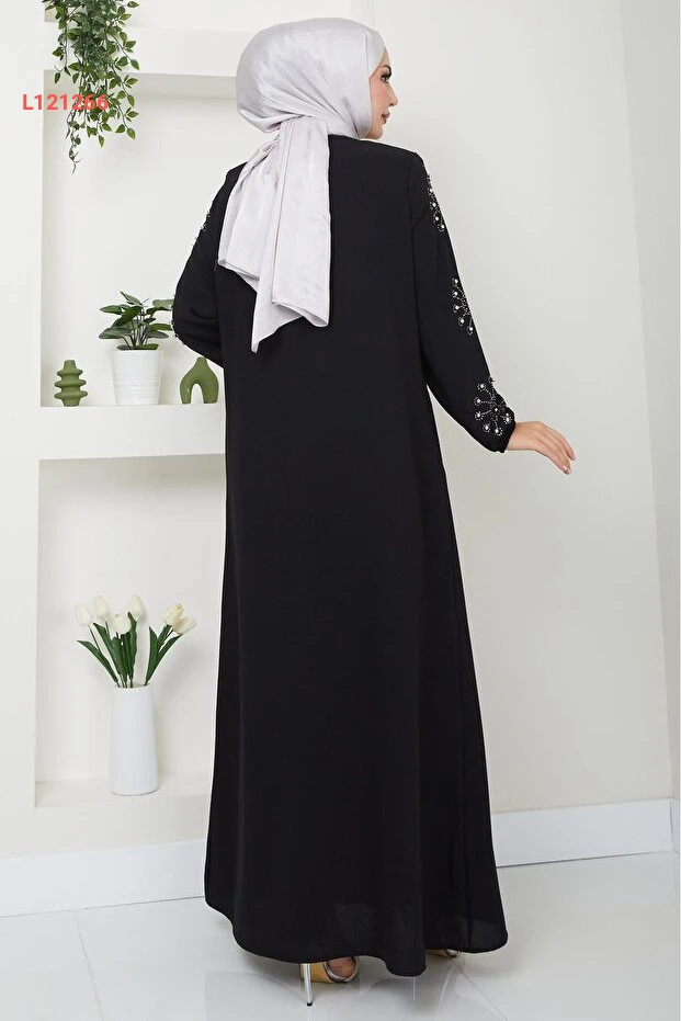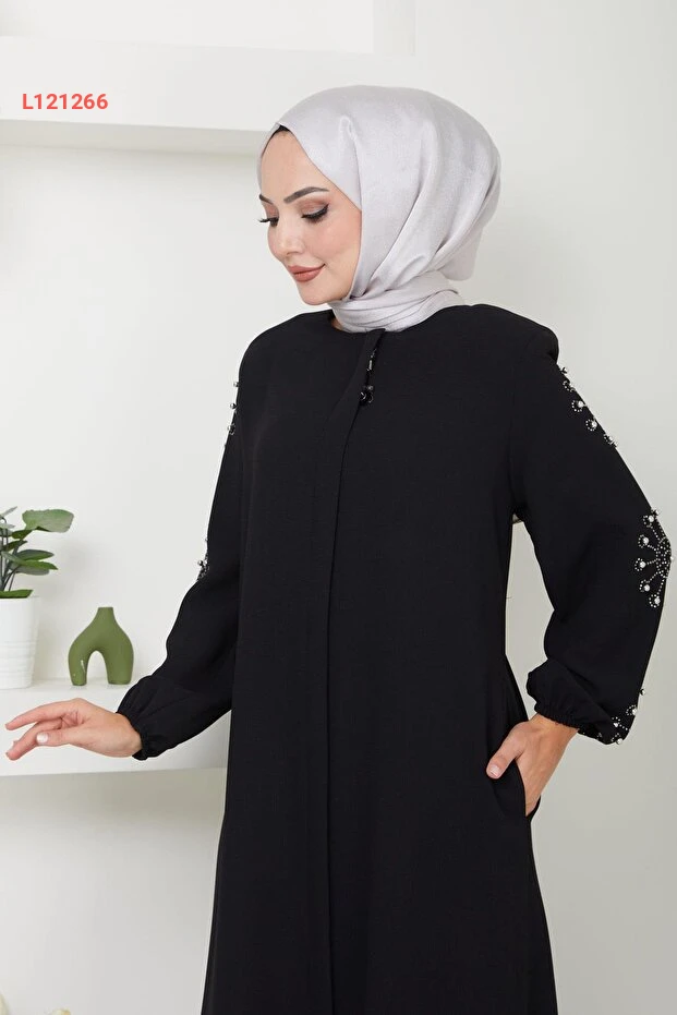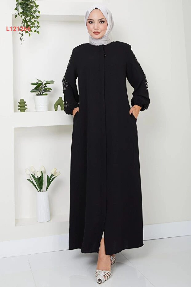 استمتعي بروعة الأناقة مع فستان الفيروز الأسود "Hafsamina Kolu Taşlı ve İncili Ferace HM2494". يتميز بتفاصيله الراقية من الأحجار واللؤلؤ، ليضفي لمسة من الفخامة على إطلالتك، كما يوفر راحة مثالية بفضل خامته عالية الجودة. اجعلي كل مناسبة تتألقين فيها مع هذا التصميم الفريد الذي يجمع بين الأناقة والراحة.