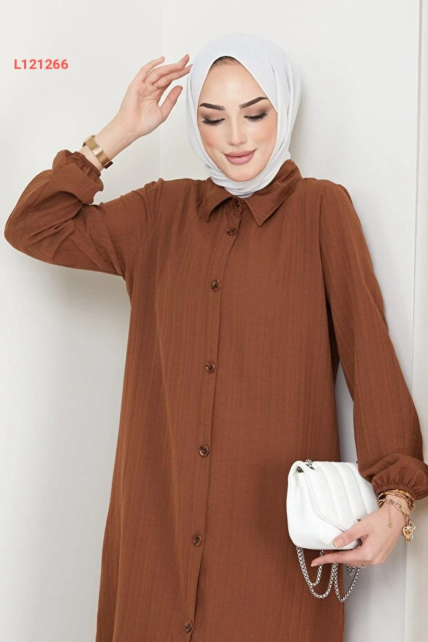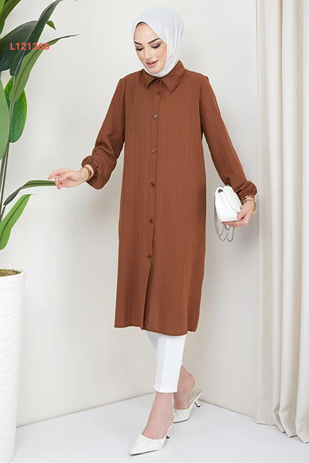 استمتع بأناقتك وراحتك مع تونيك يازلك الطويل من هافسيمان! يتميز بلون بني أنيق وجودة قماش القطن الناعم الذي يمنحك شعورًا بالانتعاش والراحة طوال اليوم. مثالي للمناسبات الصيفية أو الإطلالات اليومية، فهو يضيف لمسة من الأناقة العصرية إلى خزانتك.