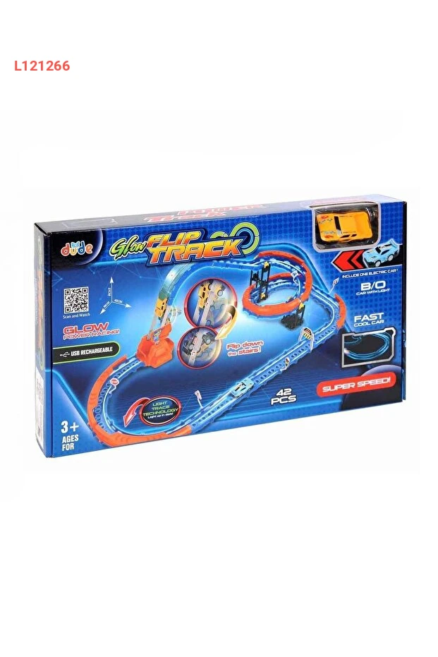 استمتع بتجربة سباق فريدة مع مجموعة HAK İŞ OYUNCAK Glow Flip Track! تحتوي على 42 قطعة مبهجة، تشمل مسارًا مميزًا مع منحدر حلزوني وأضواء ساحرة، مما يضيف لمسة سحرية للسباقات. اشحن سيارتك السريعة عبر USB واستعد لمغامرات لا تُنسى مع الأصدقاء والعائلة!