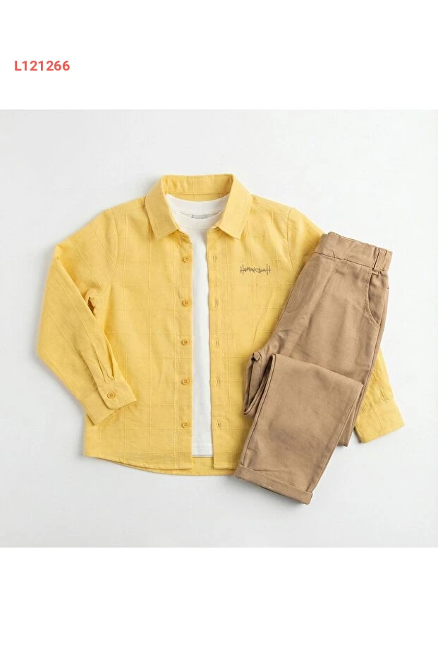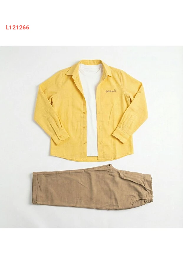 تعرّف على مجموعة HAKNUR المكونة من ثلاثة قطع، المصنوعة من 100% قطن ناعم ومريح، المثالية لإطلالة عصرية تدوم طوال اليوم. تحتوي المجموعة على قميص قطن مضلع وتي شيرت أنيق وبنطلون مريح، مما يجعلها الخيار الأمثل للأطفال من عمر 9-12 سنة للعب والاستمتاع بدون أي قيود. امنح طفلك أسلوباً مميزاً وراحة قصوى مع هذه التشكيلة الرائعة!