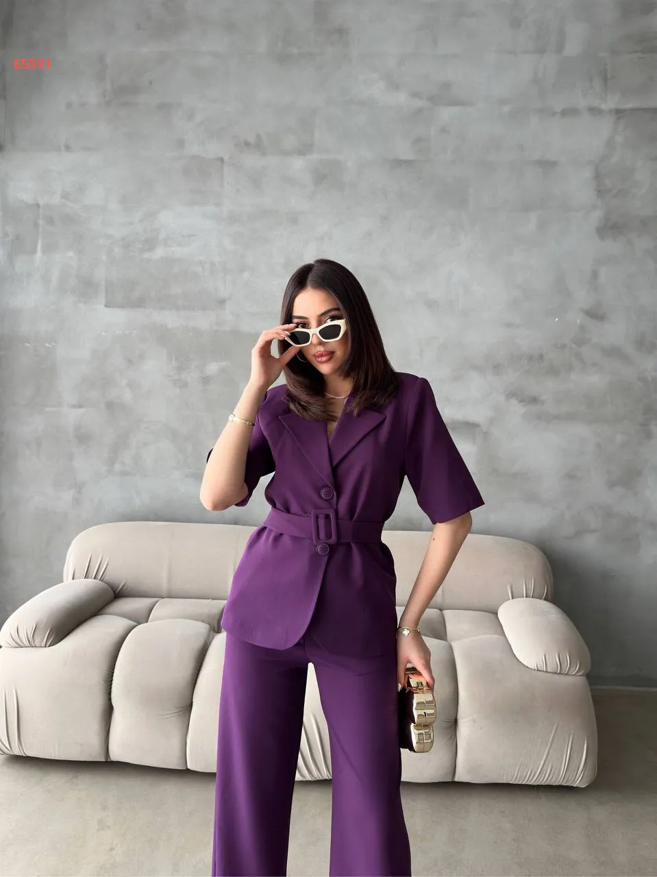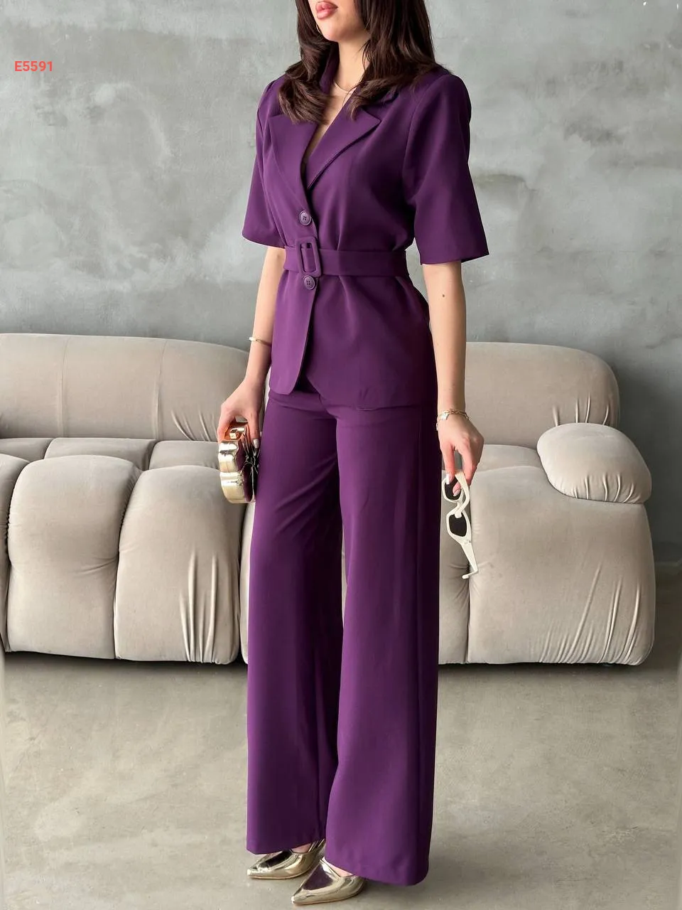 طقم بنطال وبليزر نصف كم