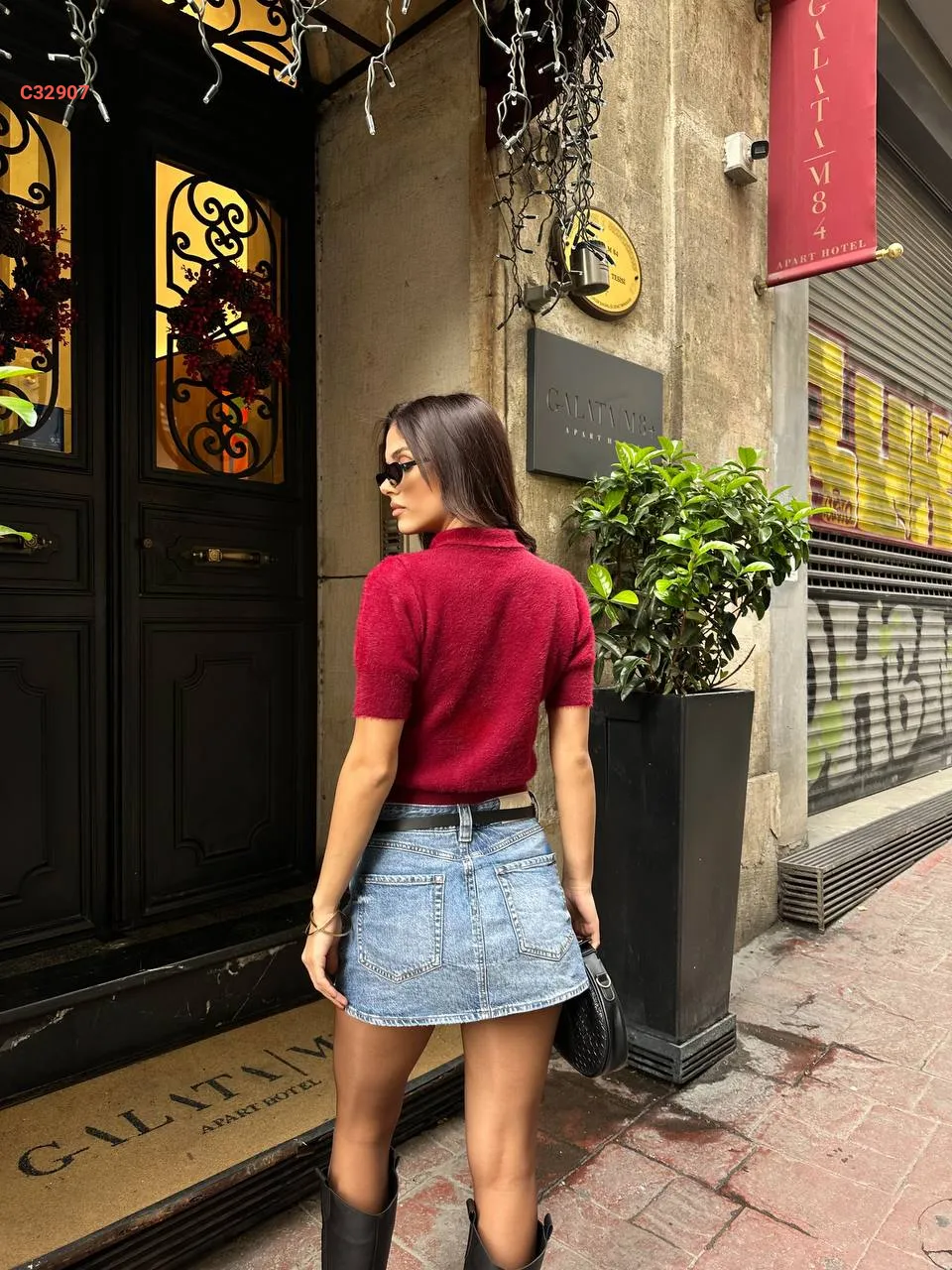 كنزة تريكو بياقة مادونا وبرو...