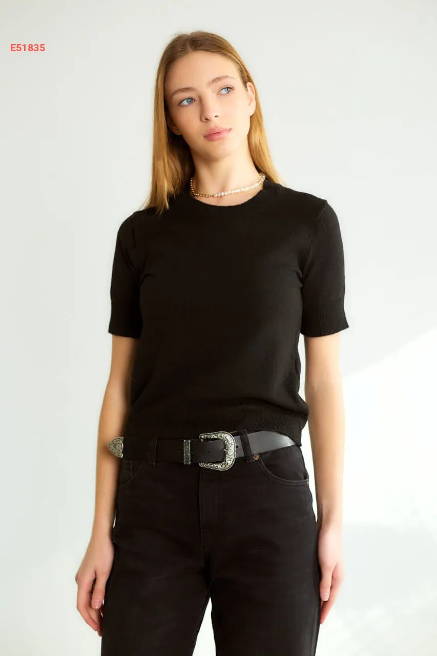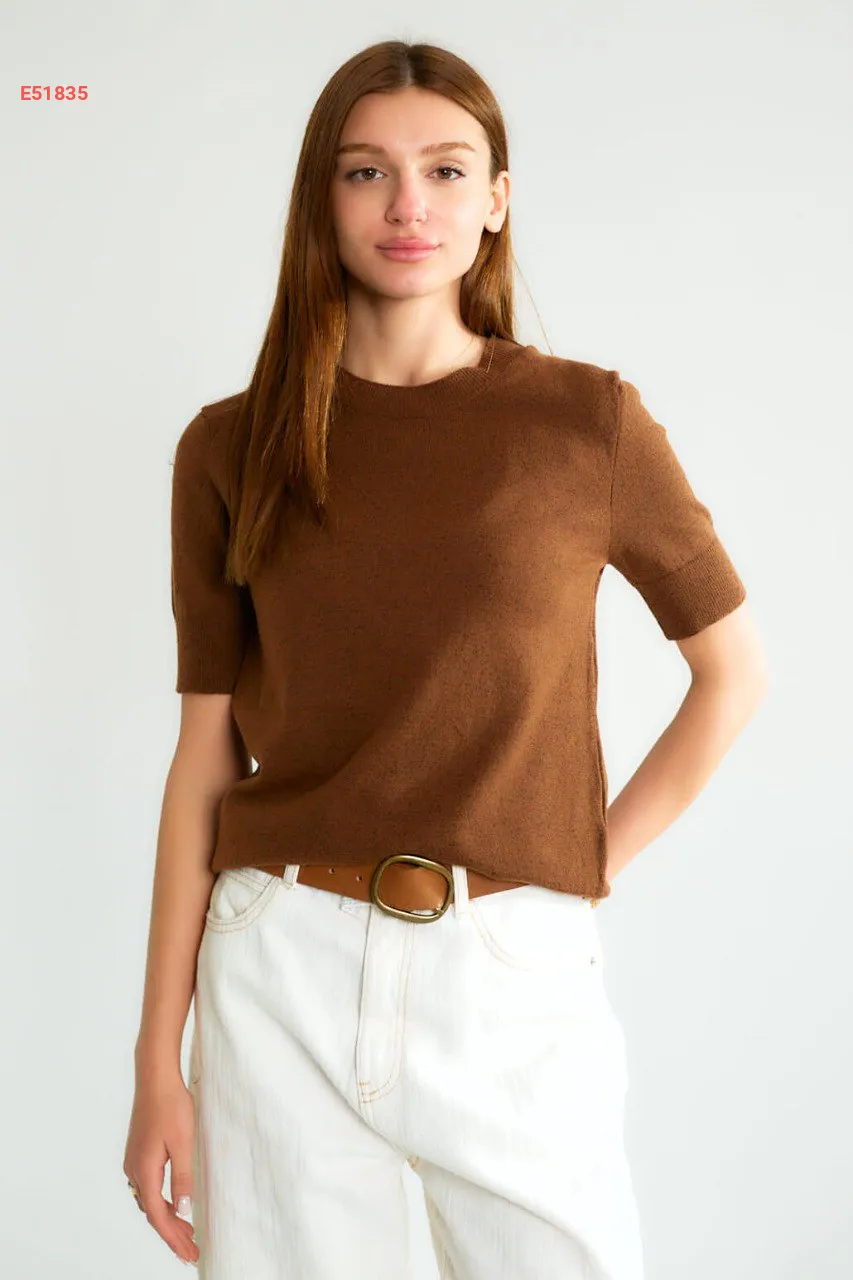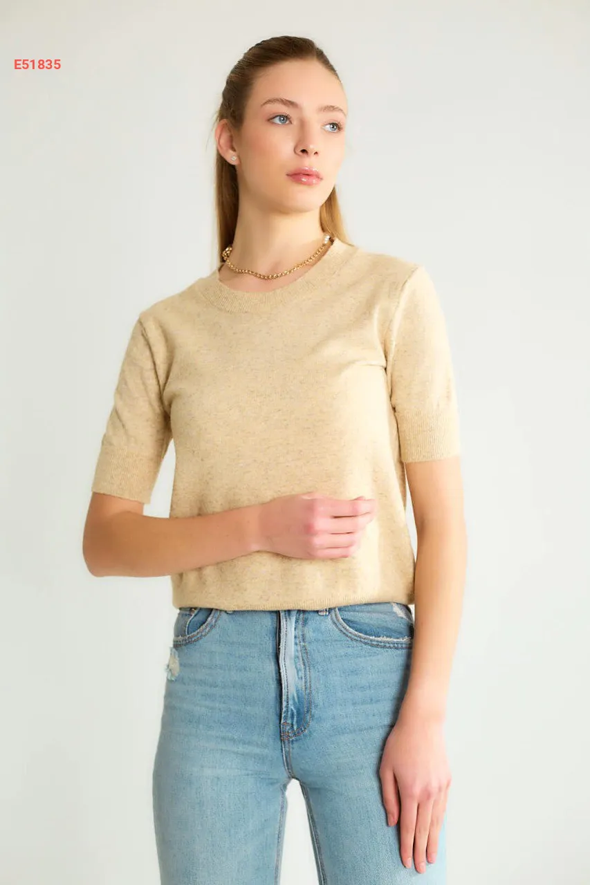 كنزة نص كم تريكو سادة