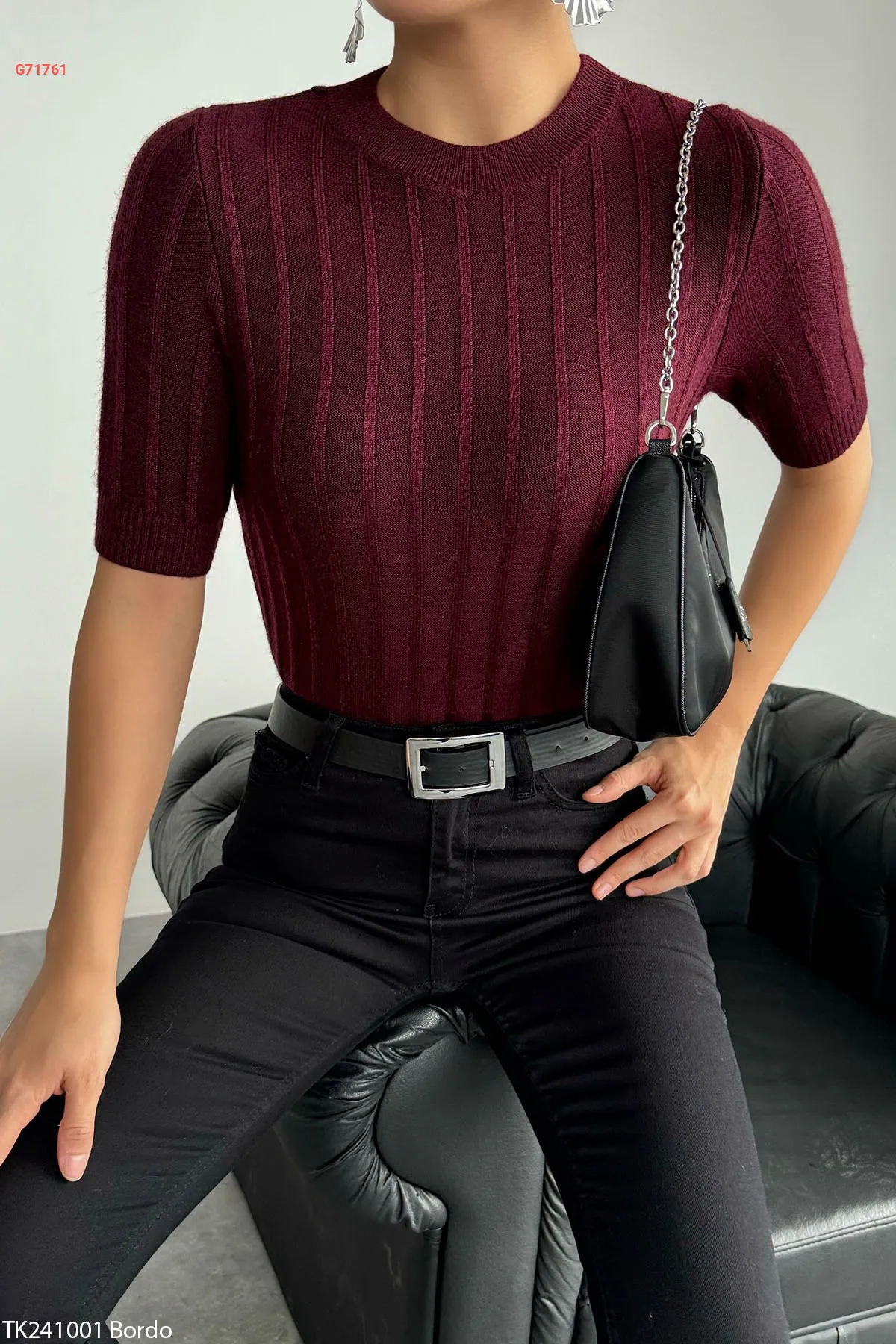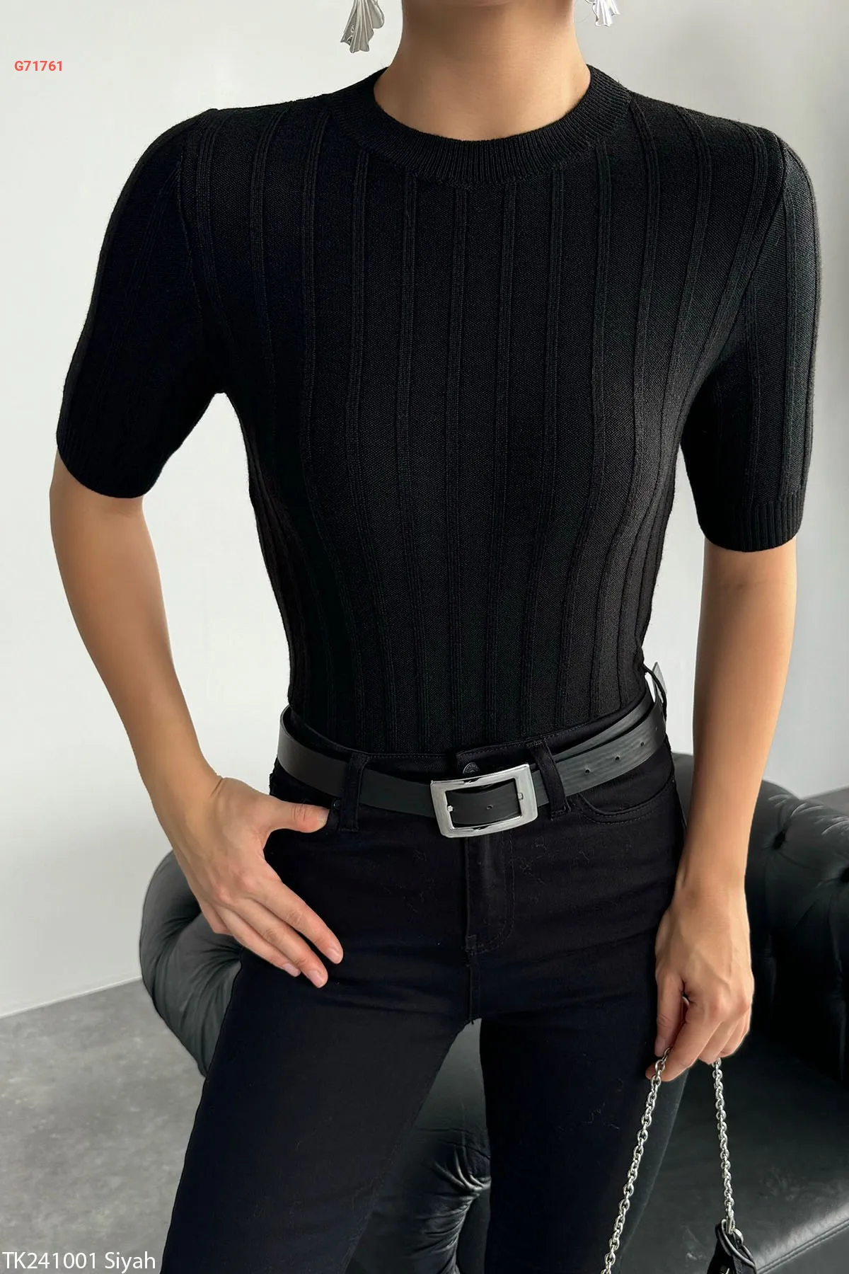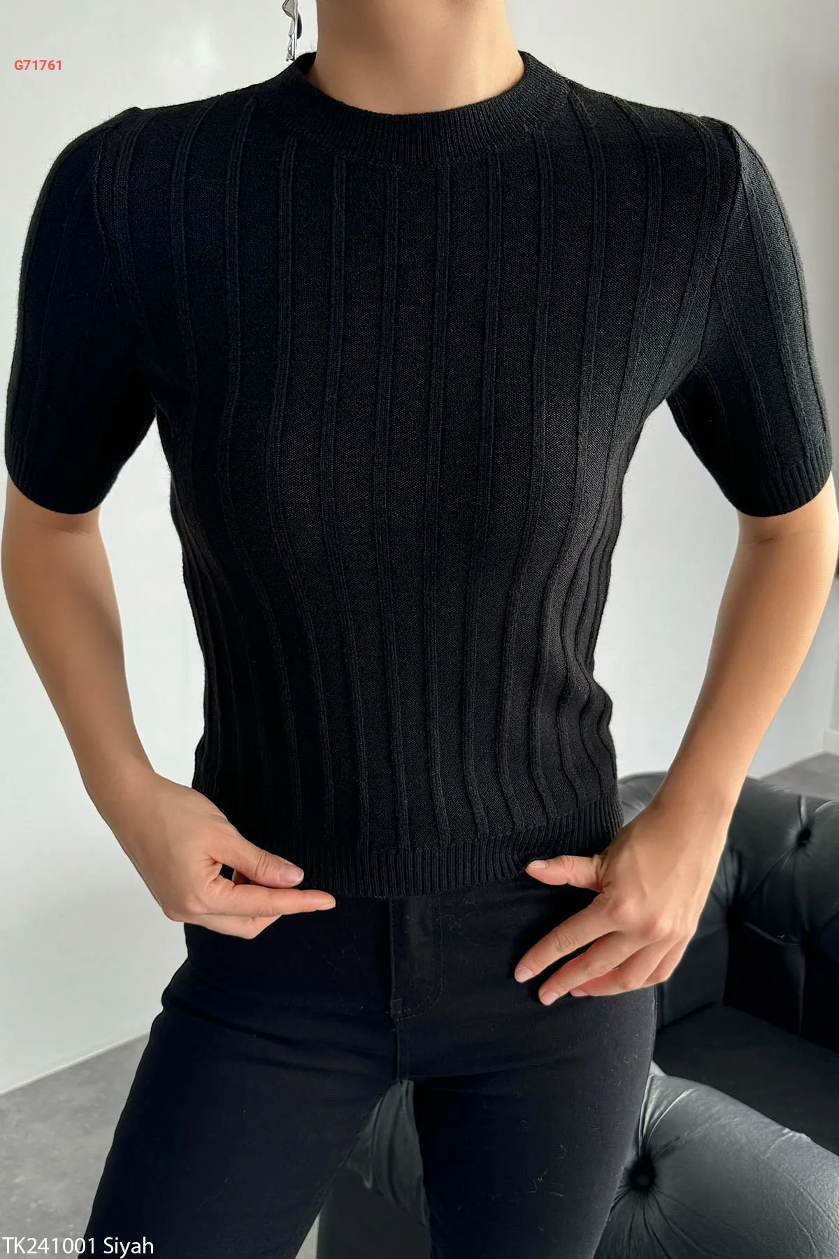 كنزة تريكو نصف كم محززة
