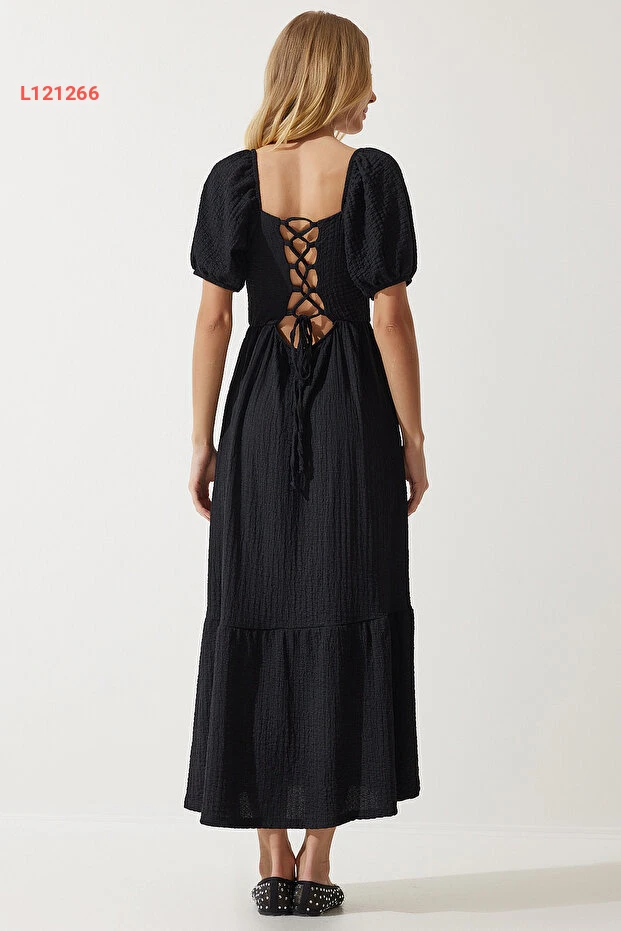 فستان صيفي أسود بتصميم قلب مزخرف من هابينيس إسطنبول