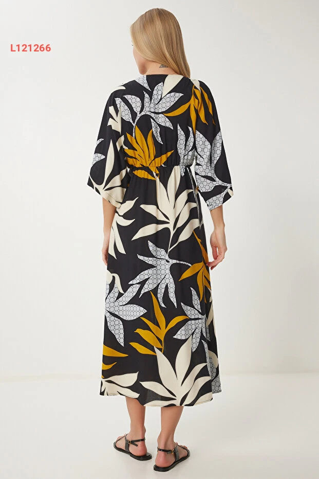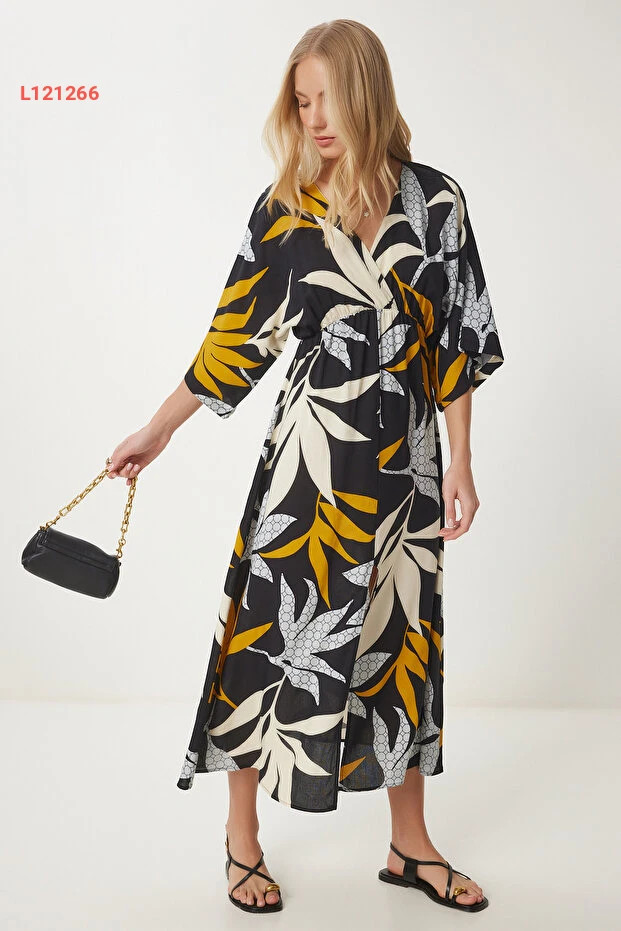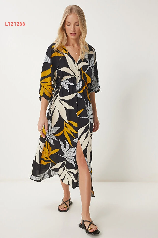 استمتعي بأناقتك في فصول الصيف مع فستان Happiness İstanbul الأنيق! يتميز بقصة أنفيلوب الراقية ونقوشه الجذابة، فضلاً عن تصميمه بلون الأسود والموارد المميزة من الكتان، مما يوفر لك راحة مثالية وأناقة لا تضاهى في كل مناسبة. اجعليه خيارك المثالي للتألق تحت أشعة الشمس!