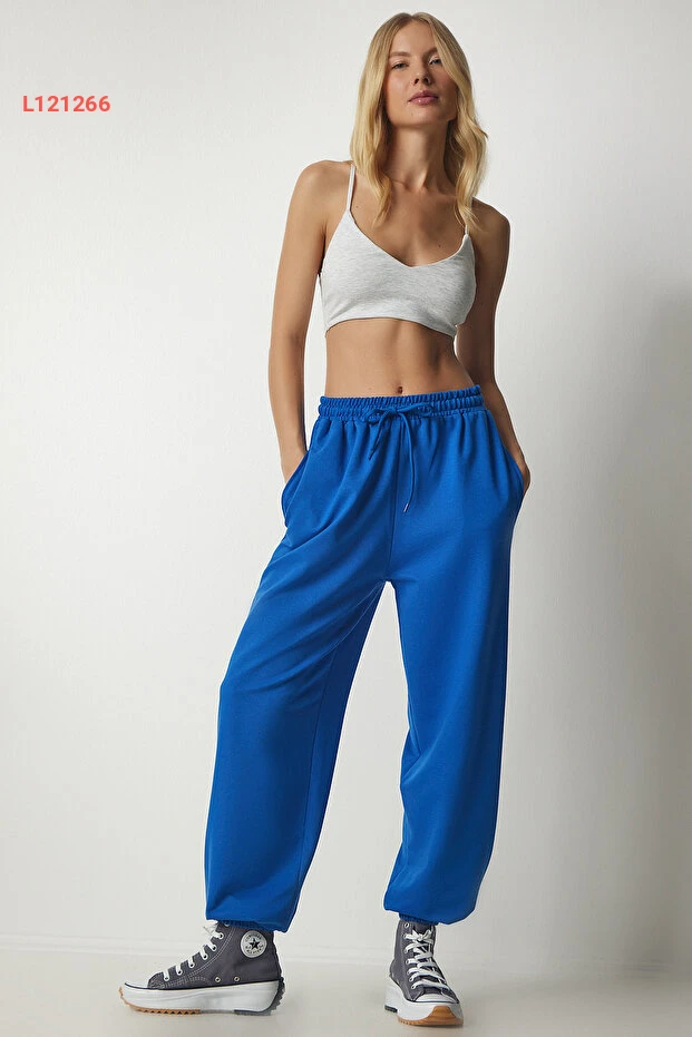 استمتعِ بالراحة والأناقة مع بنطال الجري النسائي من Happiness İstanbul بلون الأزرق الجميل. يتميز بقصته الواسعة التي تمنحك حرية الحركة، بالإضافة إلى خامته الناعمة التي تدلل بشرتك. كوني دائمًا في قمة أناقتك وراحتك سواء في الجيم أو أثناء الاسترخاء في المنزل!