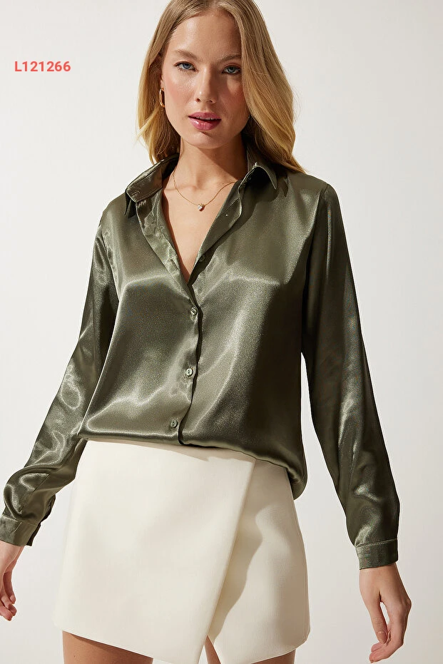 استمتع بالأناقة المريحة مع قميص Happiness İstanbul باللون الكاكي الداكن. يتميز بقماش ساتيني خفيف ودائري، مما يمنحك حرية الحركة وإطلالة أنيقة في كل مناسبة. ارتدي هذا القميص لإضافة لمسة عصرية إلى خزانة ملابسك!