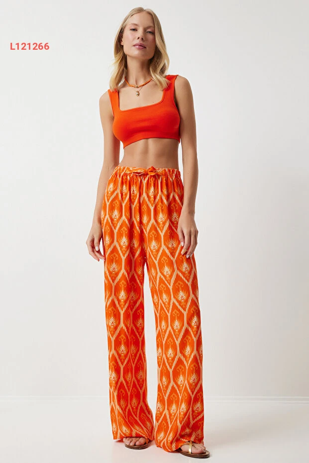 استمتعي بالأناقة والراحة مع بنطلون بالازو من Happiness İstanbul بلون برتقالي داكن ونقشة مميزة. مصنوع من قماش الفيسكون الناعم، يوفر لك حرية الحركة ومظهرًا عصريًا يناسب جميع المناسبات. اجعلي إطلالتك مبتكرة ومريحة مع هذا التصميم الفريد الذي يجمع بين الأناقة والعملية!