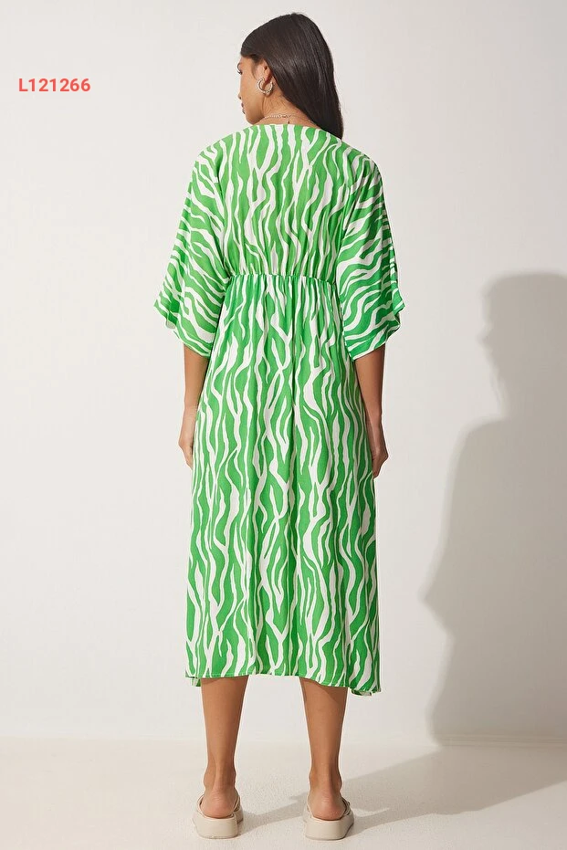 فستان صيفي طويل للنساء بياقة على شكل V من هابي إستانبول - أخضر