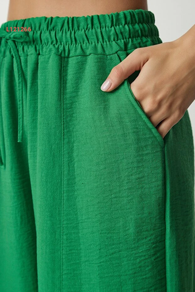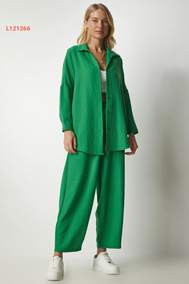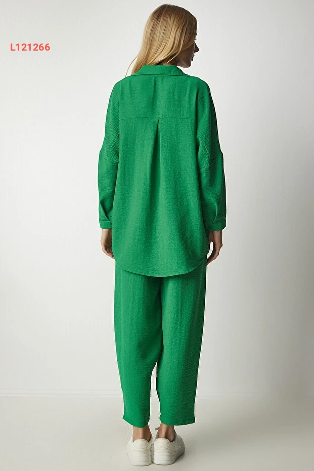 طقم بنطلون وشال قميص نسائي من هابنس إسطنبول باللون الأخضر