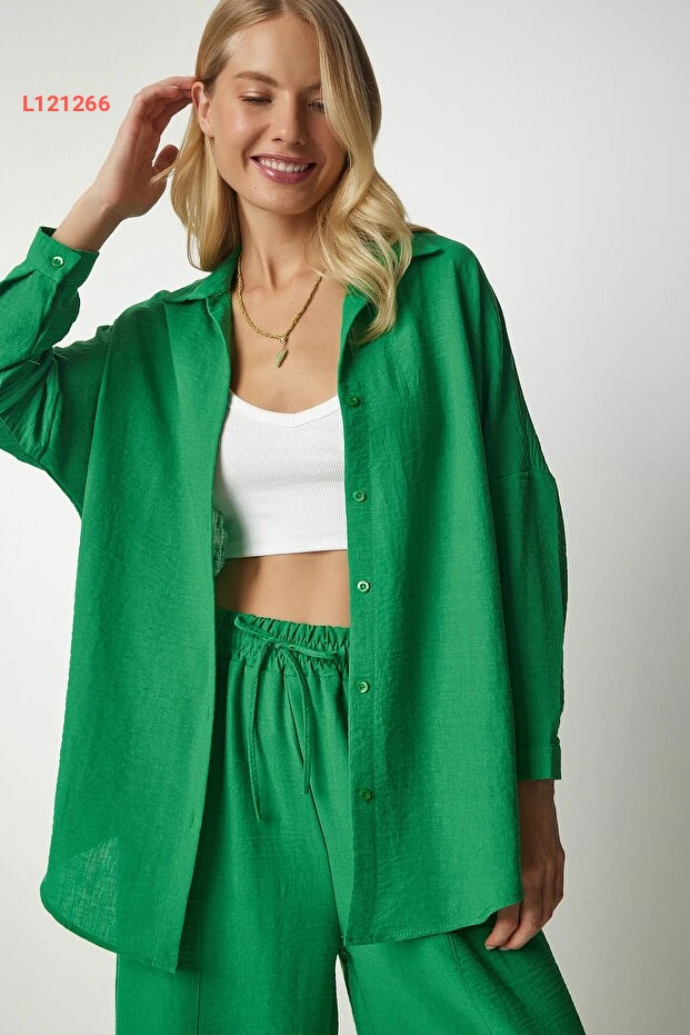 استمتعي بأناقة مريحة مع طقم "Happiness İstanbul" من القميص والبنطال الجلبي الأخضر! يتميز هذا الطقم المصنوع من الكتان الخفيف بالتهوية المثالية لمواكبة أيامك الحارة، بينما يعكس تصميمه العصري لمسة من الرقي. كوني مميزة في كل مناسبة مع هذا الاختيار المثالي الذي يجمع بين الراحة والأناقة.