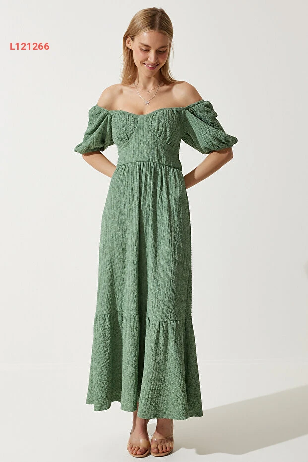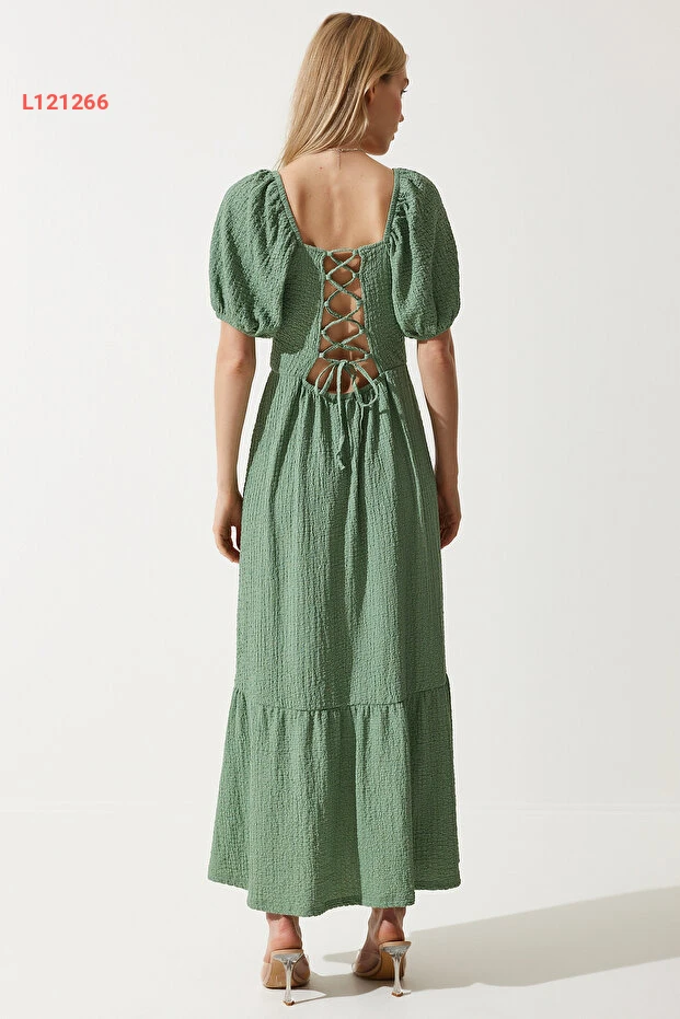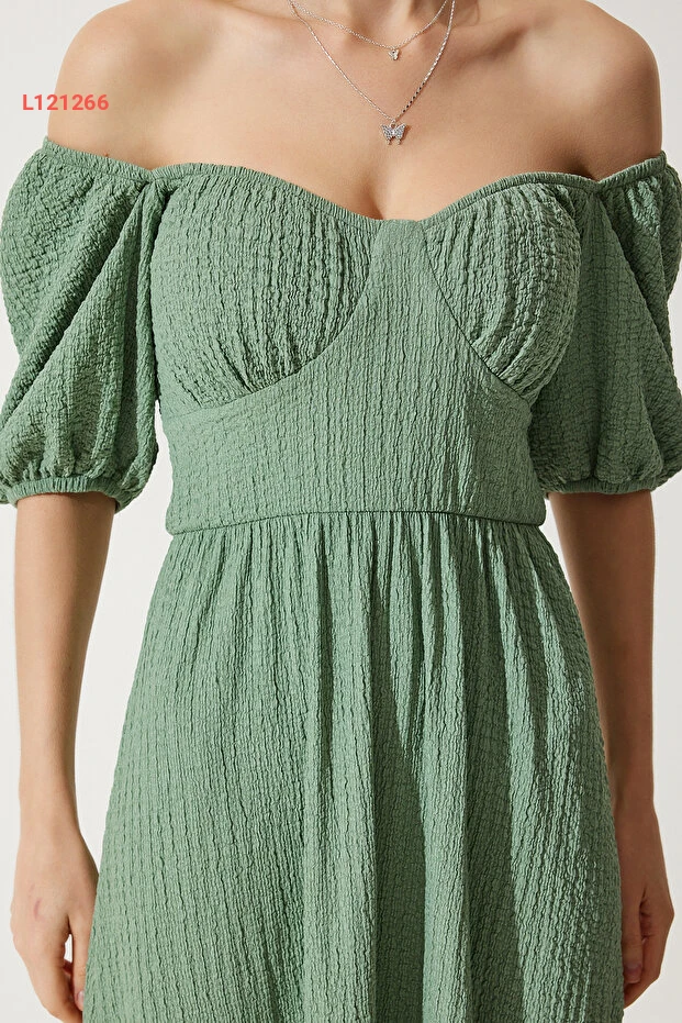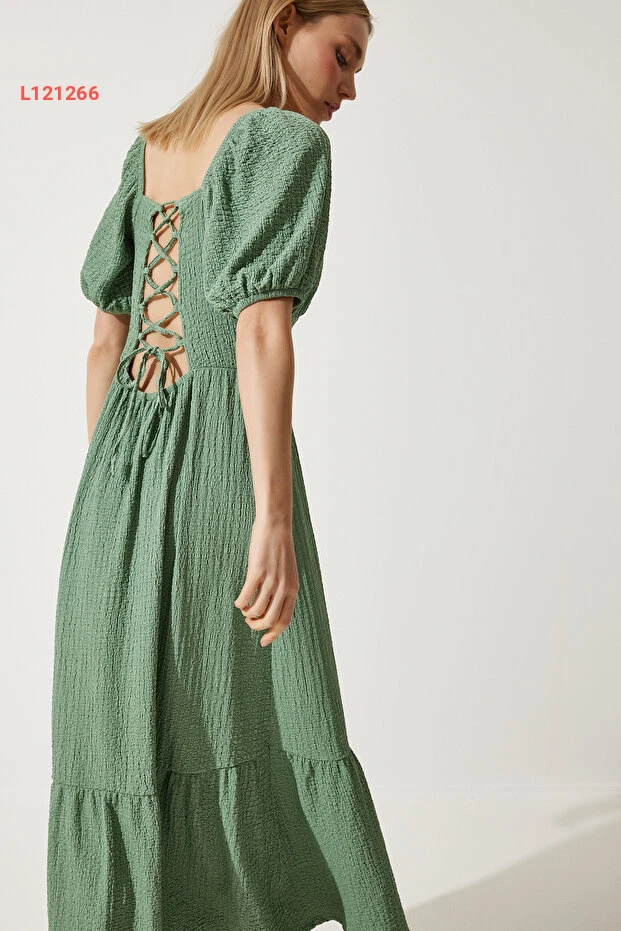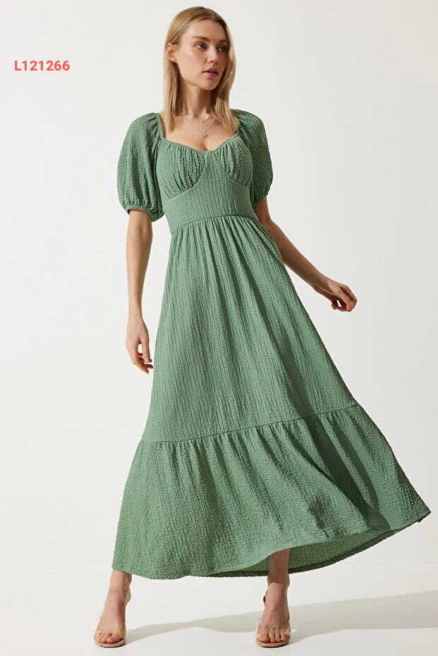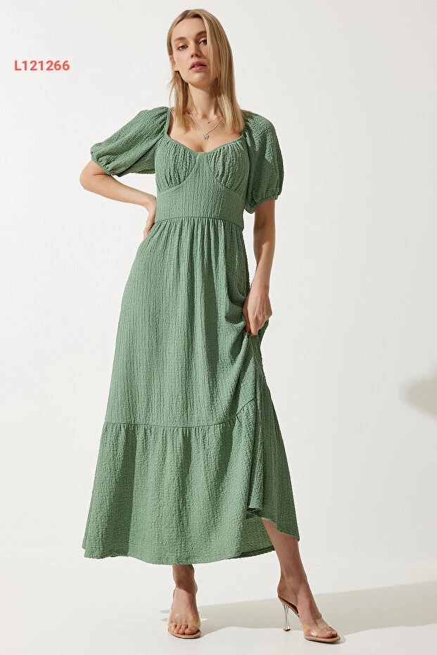 فستان صيفي مزخرف بفتحة قلب للنساء بلون أخضر فاتح من ماركة هابي نس إسطنبول