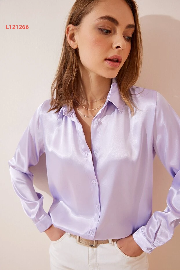 بلوزة نسائية ليلك ساتان خفيف من هابينيس إسطنبول DD00990