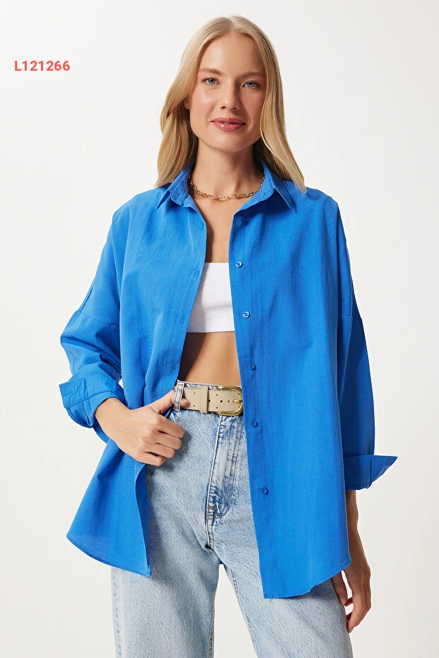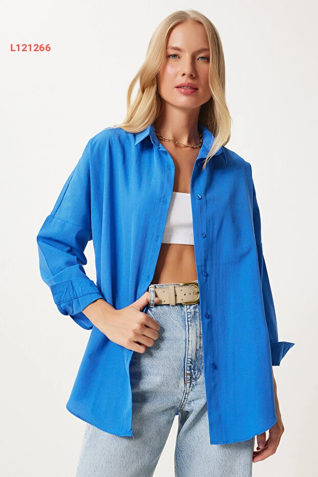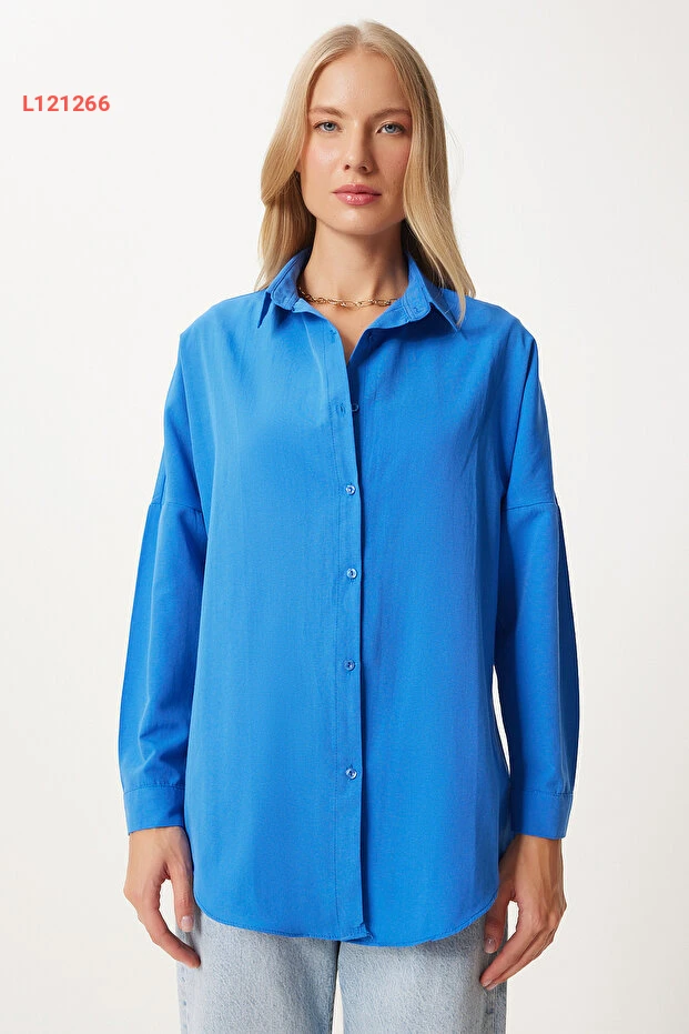 استمتعي بأناقة لا تضاهى مع قميص "Happiness İstanbul" النسائي بلون الأزرق المفعم بالحياة. يتميز بتصميمه الفضفاض والطويل الذي يمنحك راحة مطلقة، بالإضافة إلى طابع أساسي يجعله خيارًا مثاليًا للتنسيق مع مختلف الإطلالات. اجعلي كل يوم فرصة للتألق!