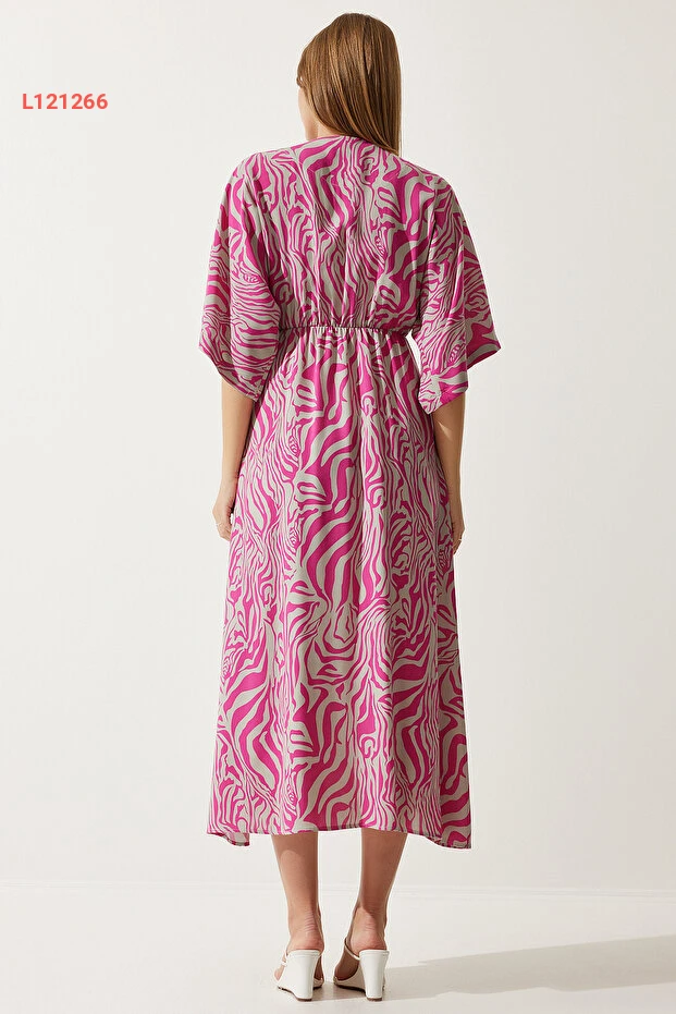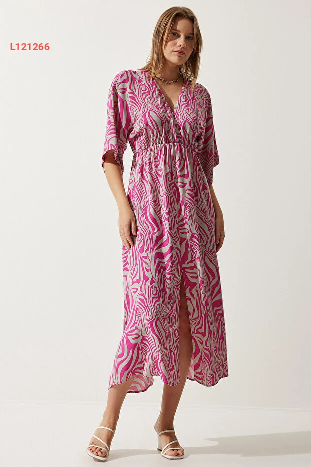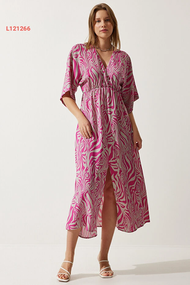 انطلق في واحة من الأناقة مع فستان Happiness İstanbul المصنوع من قماش الفيكون الناعم، الذي يمتاز بتصميمه الأنيق بياقة عريضة وألوان من الورد الرمادي الغني. مثالي لأيام الصيف، سيمنحك راحة لا مثيل لها مع لمسة عصرية تزيد من جاذبيتك في كل مناسبة. ارتدي هذا الفستان واخطفي الأنظار بأناقتك!