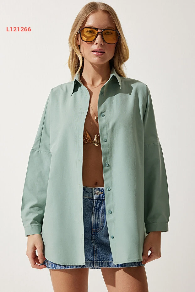 استمتع بالأناقة والراحة مع قميص "Happiness İstanbul" النسائي باللون الأخضر الفاتح. يأتي بتصميم واسع وطويل يضمن لكِ مظهرًا عصريًا ومريحًا يتناسب مع أي مناسبة. مصنوع من خامات عالية الجودة، يتيح لك حرية الحركة ويضفي لمسة من السعادة على إطلالتك اليومية.