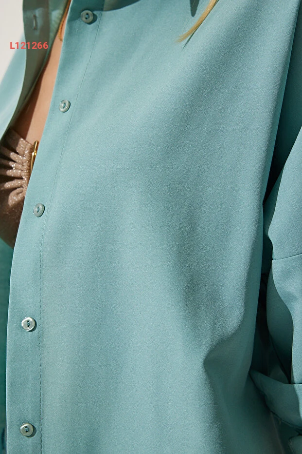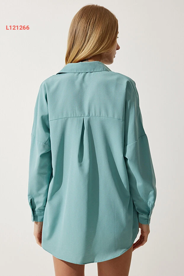 قميص أساسي طويل بحجم واسع للنساء بلون الماء الأخضر من هابي نس إسطنبول DD00842