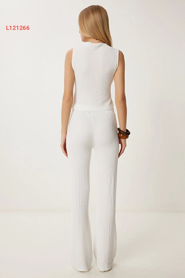 استمتع بأناقتك مع مجموعة Happiness İstanbul الربيعية، التي تضم بنطال ويست يالقي بمرونة فائقة مع سترة بيضاء مزخرفة، تمنحك مظهرًا عصريًا وجذابًا. تصميمها المريح وإطلالتها الأنيقة تجعلها الخيار المثالي لمناسبات الصيف، حيث تجمع بين الأناقة والراحة بشكل مثالي.