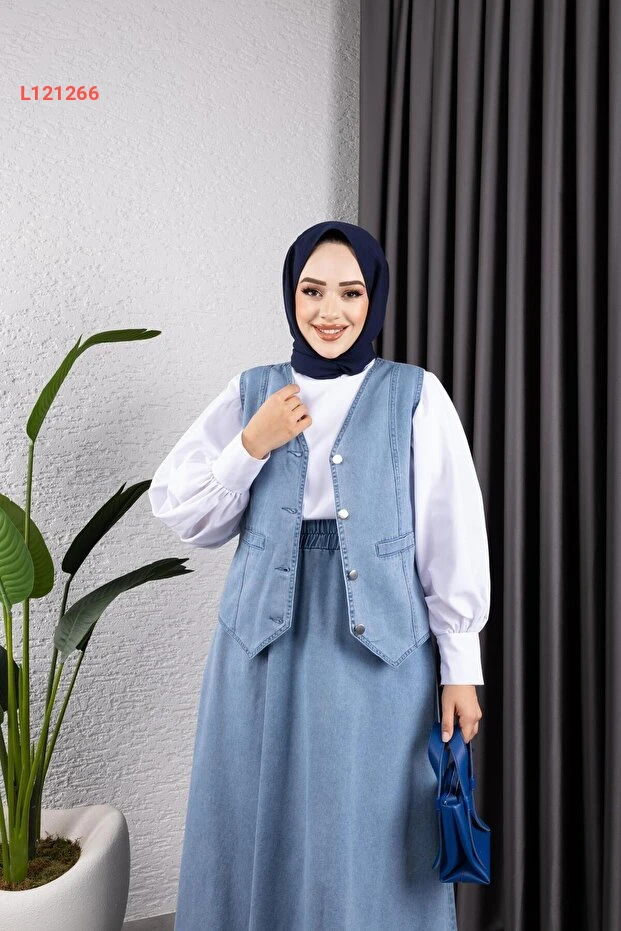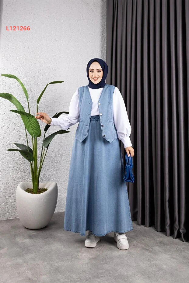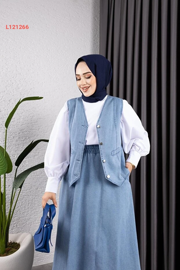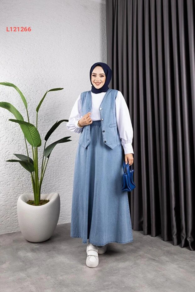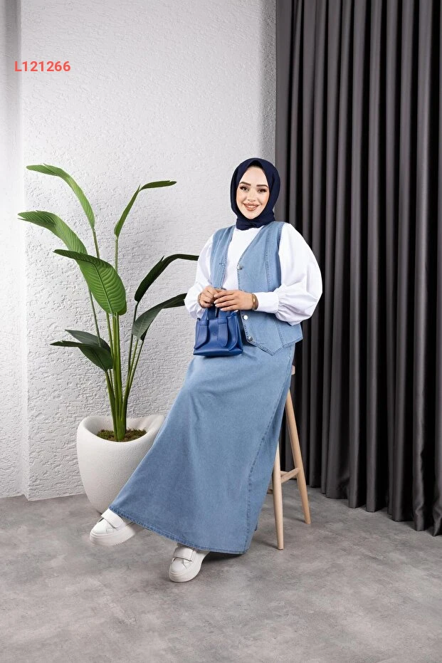 طقم تنورة وجاكيت جينز نسائي من هارمان بوتيك