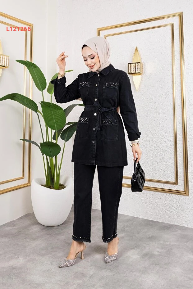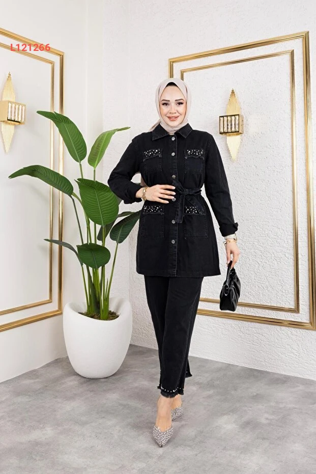 تألقي بإطلالة عصرية لا مثيل لها مع مجموعة HARMAN BUTİK التي تضم سترة جينز وسروال بتفاصيل حجرية ساحرة. تتميز هذه المجموعة بتصميمها الفريد الذي يجمع بين الأناقة والراحة، مما يجعلها الخيار المثالي لكل مناسبة. ارتديها وثقي بأنك ستكونين محور الاهتمام!