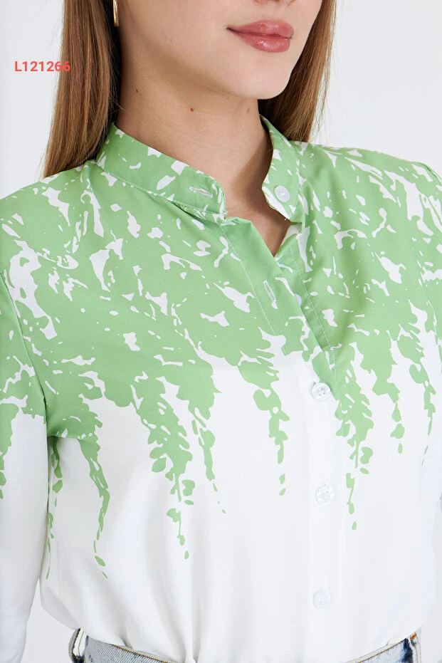 بلوزة نسائية خضراء فاتحة بياقة حاكمة مزخرفة من أرمانيكا