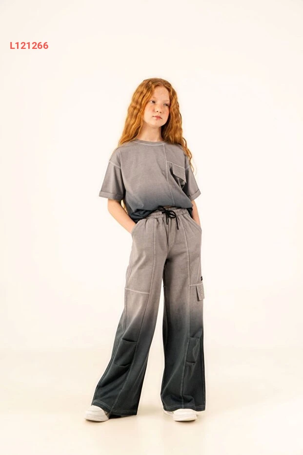 طقم بناتي ملكي للأطفال من 9 إلى 15 سنة - لون أنثراسايت